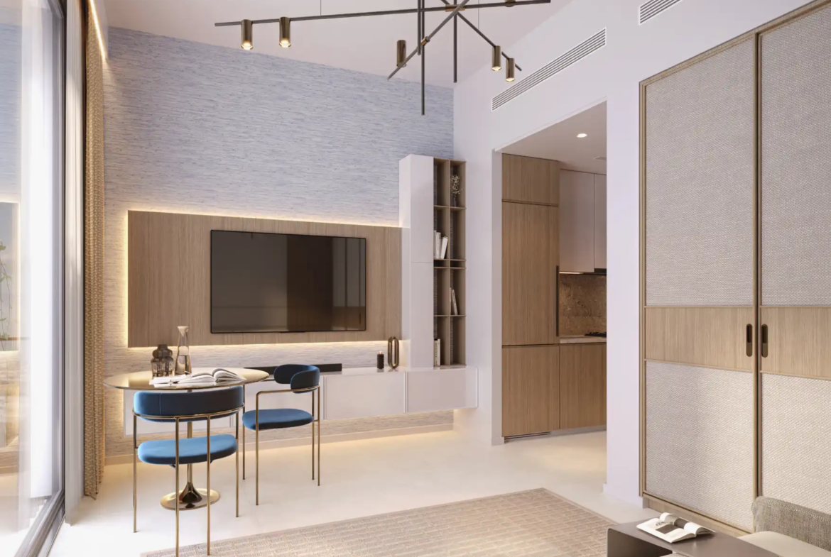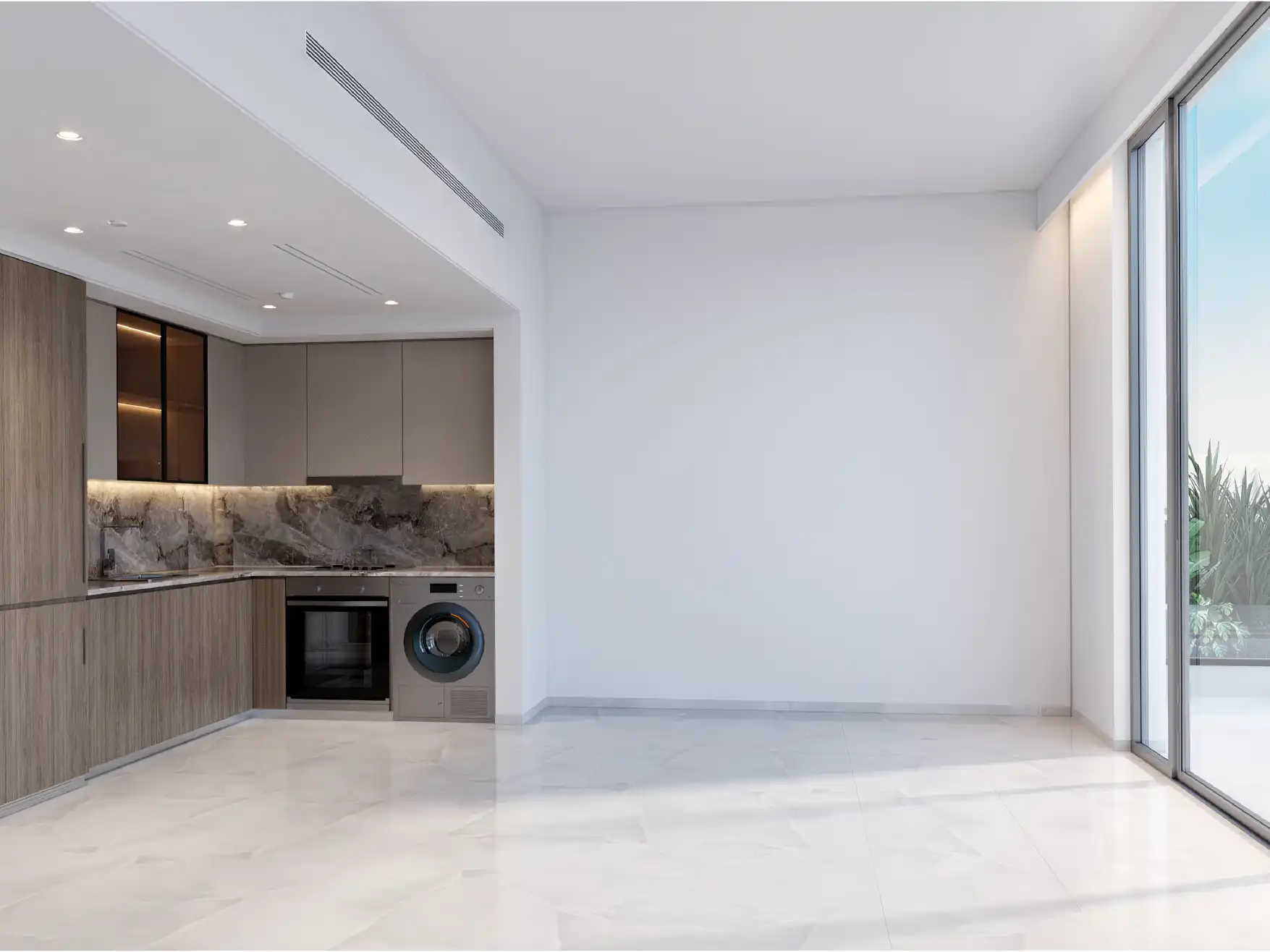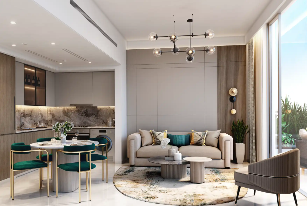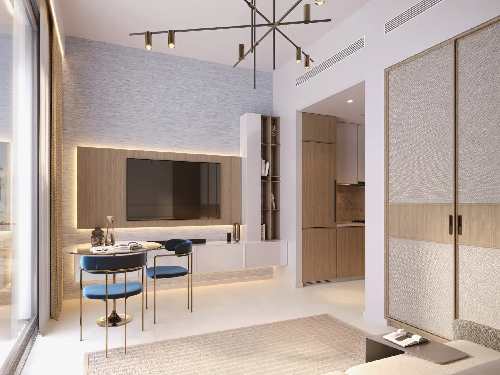 Inside your residence, refined Italian design principles come to life with soft textures, designer lighting, modern finishes, and expansive floor-to-ceiling windows overlooking lush green parks or calm canals. Choose from chic studios, one-bedroom, two-bedroom, and three-bedroom apartments in Dubai, each offering open layouts and an elegant interior palette inspired by Milanese style.