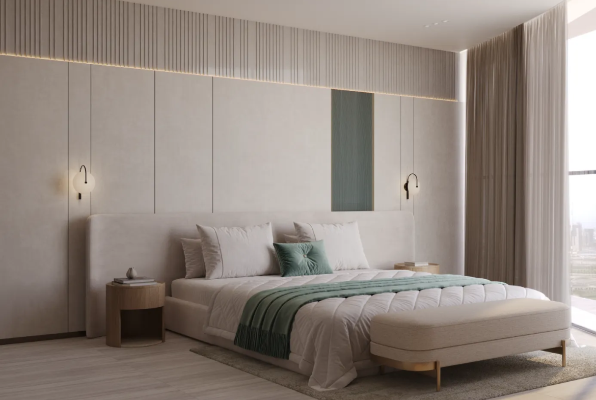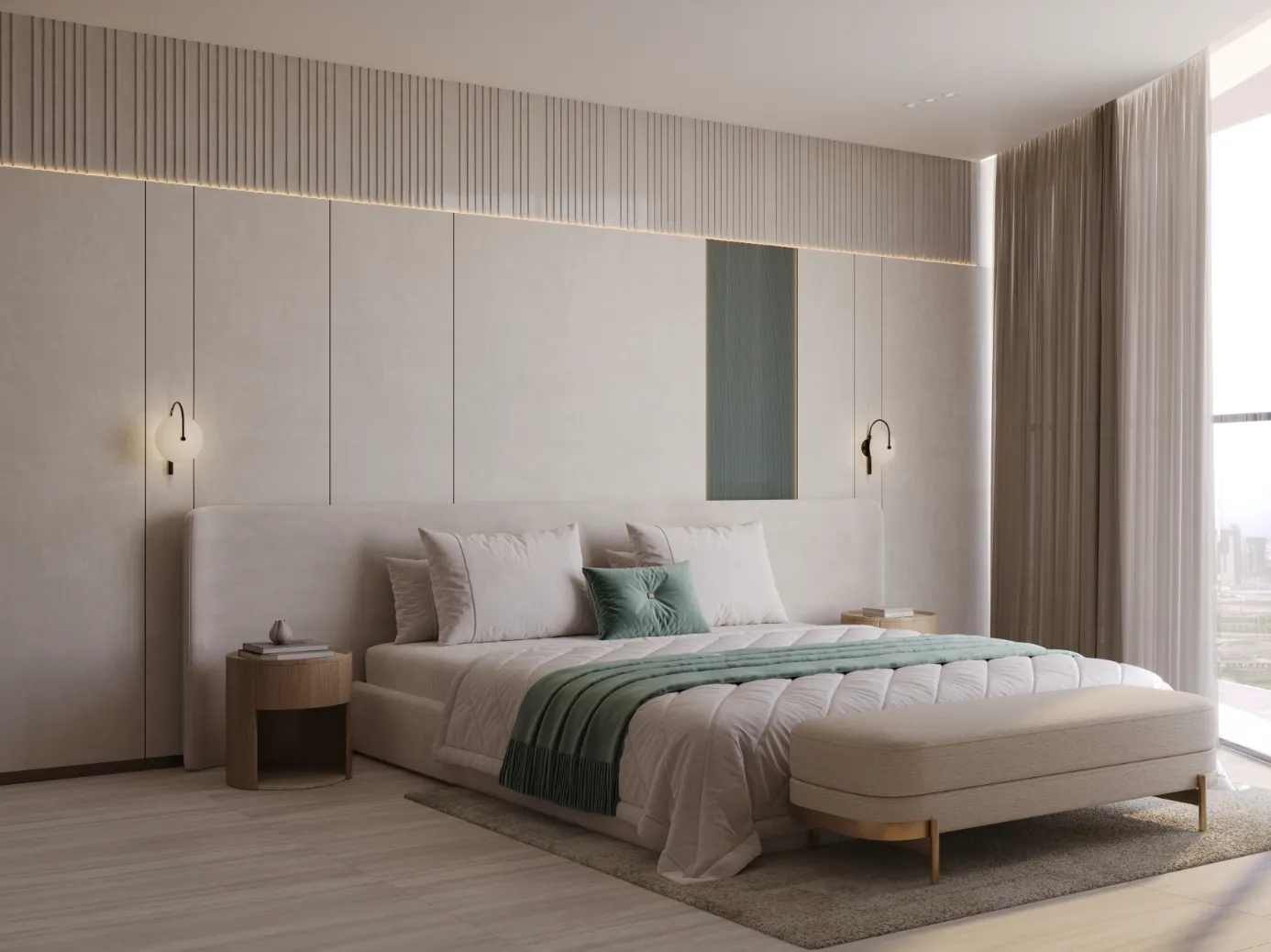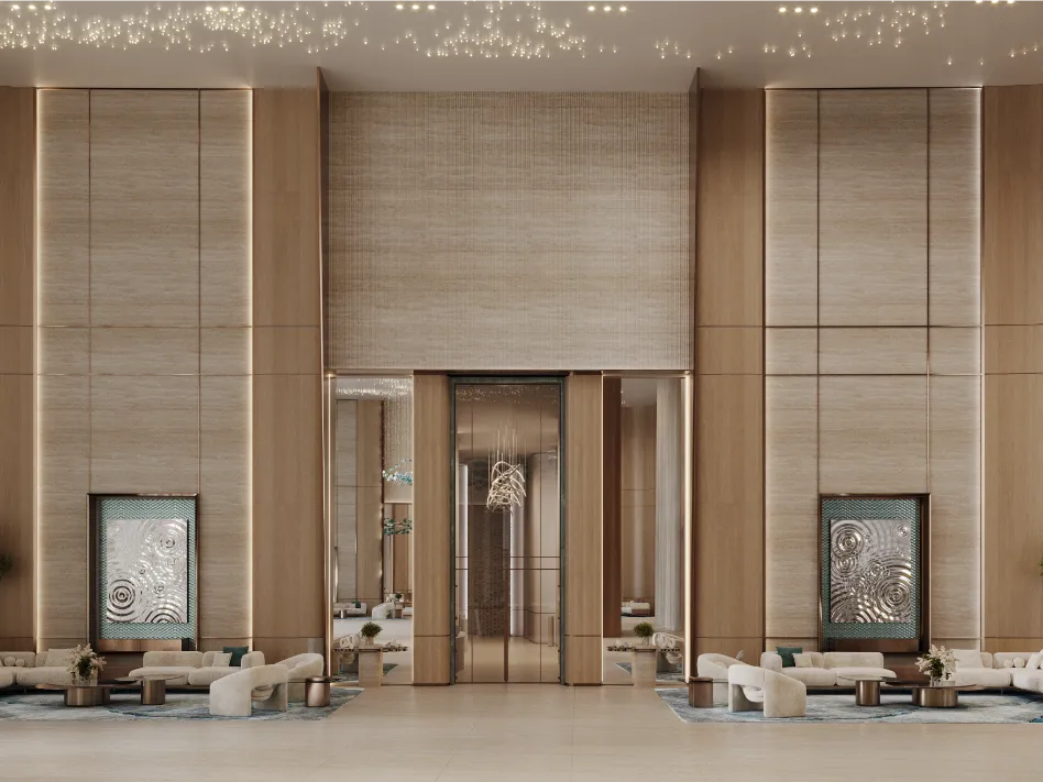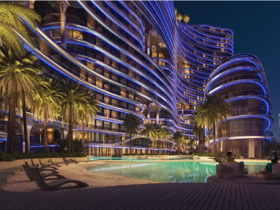 The project presents an impressive portfolio of residences, including 688 studios, 736 one-bedroom apartments, 152 two-bedroom homes, and 22 exclusive three- and four-bedroom Royal Suites. Each residence features generous layouts, refined interiors, and elegant finishes, blending polished marble, natural oak wood, and coastal-inspired color palettes to create an atmosphere of serenity and sophistication.