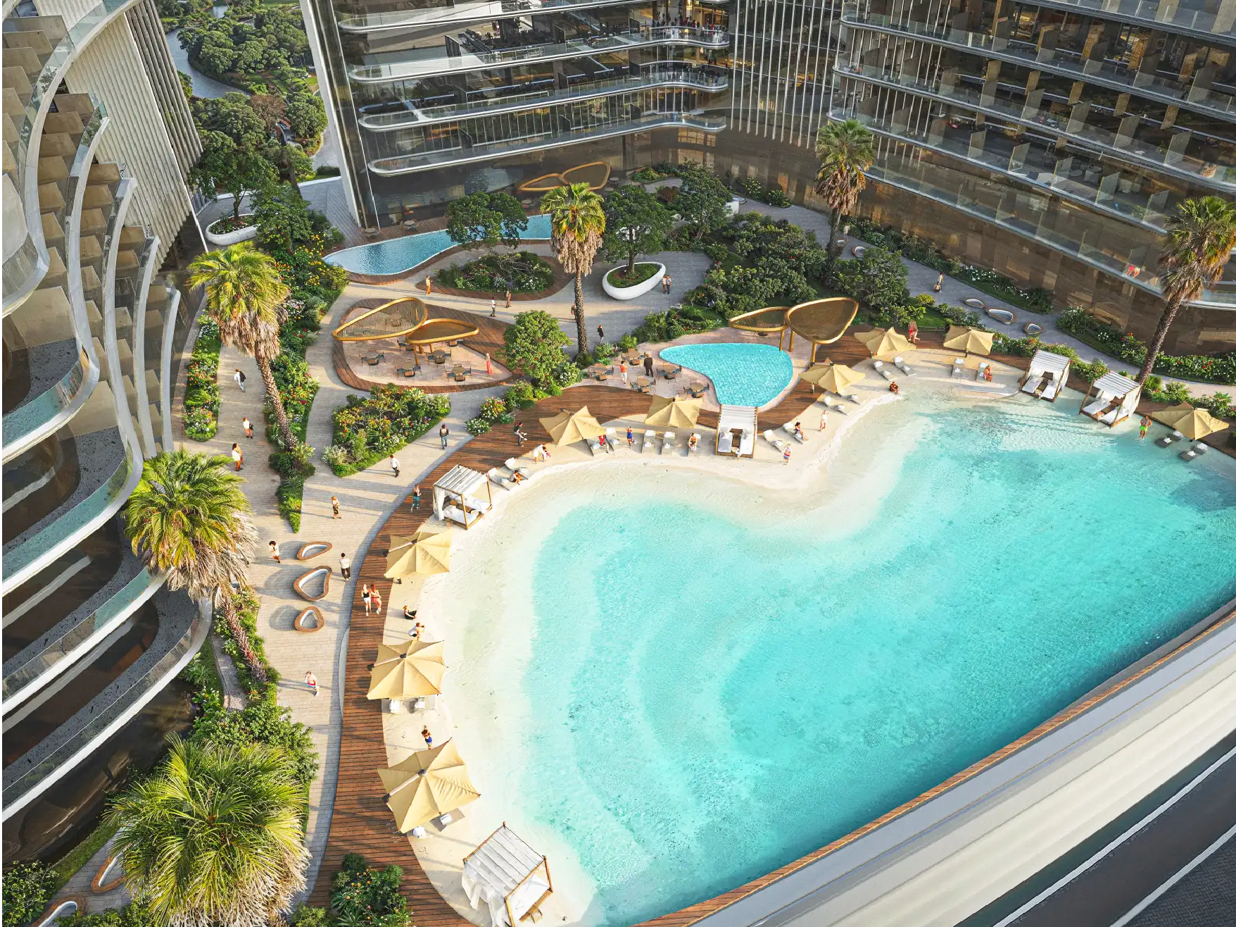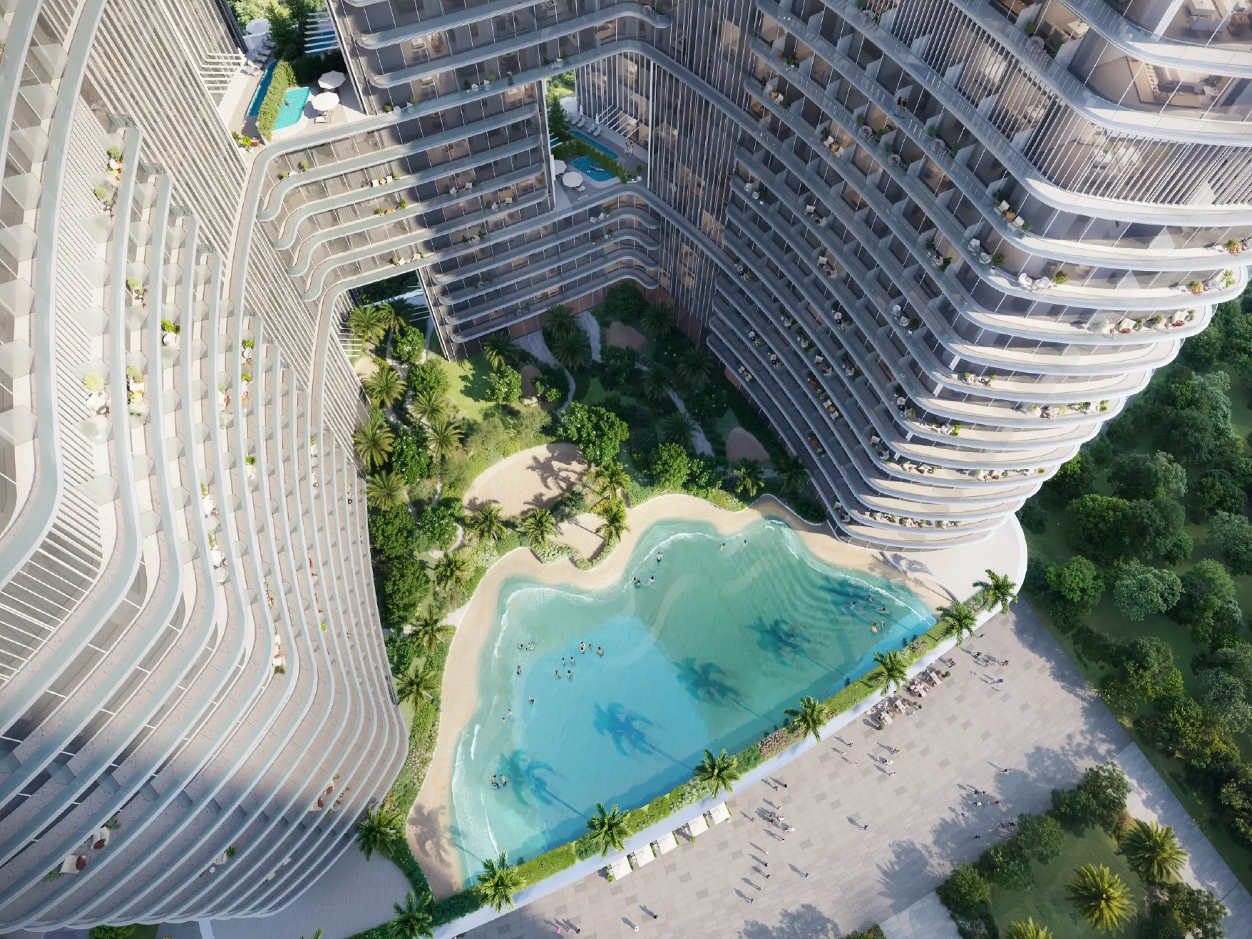 Inspired by Binghatti’s signature curvilinear design philosophy, the tower features sculpted contours and a dynamic façade that interacts beautifully with natural light. Organic materials and sustainable design elements enhance the building’s visual identity while promoting a harmonious balance between modern architecture and the surrounding environment. Every detail reflects precision, creativity, and a commitment to contemporary living.