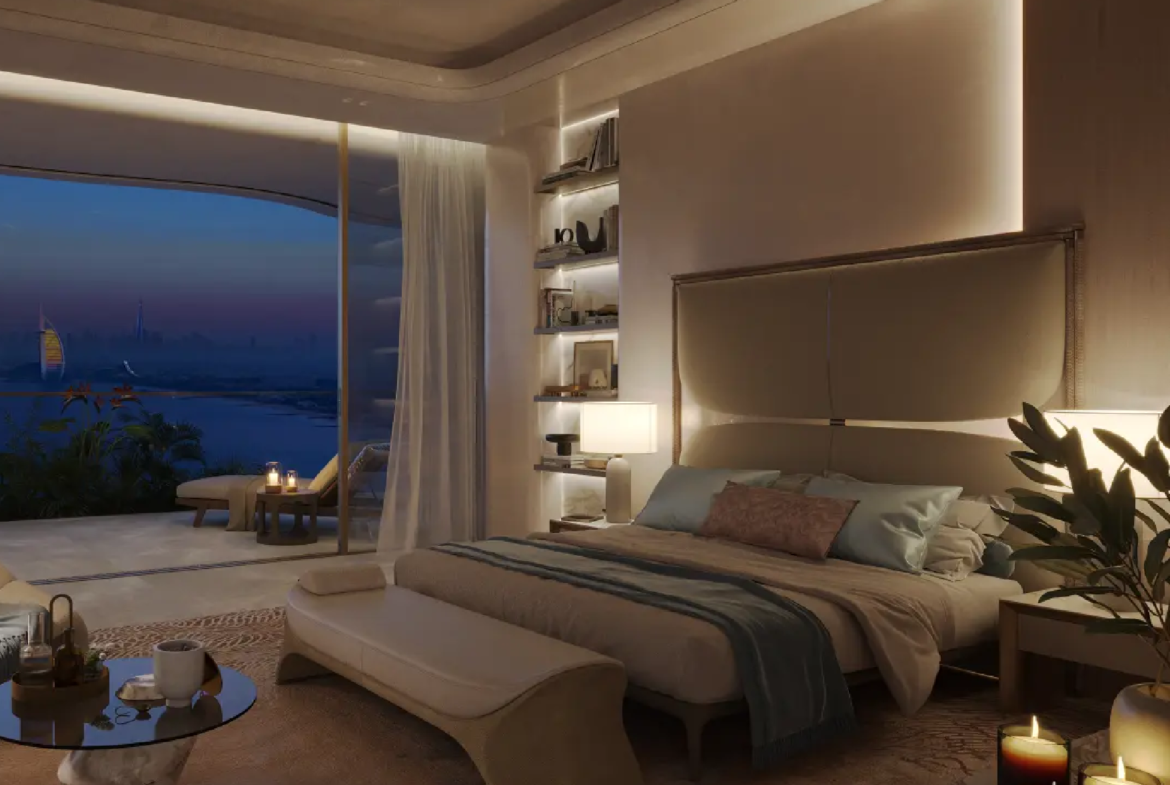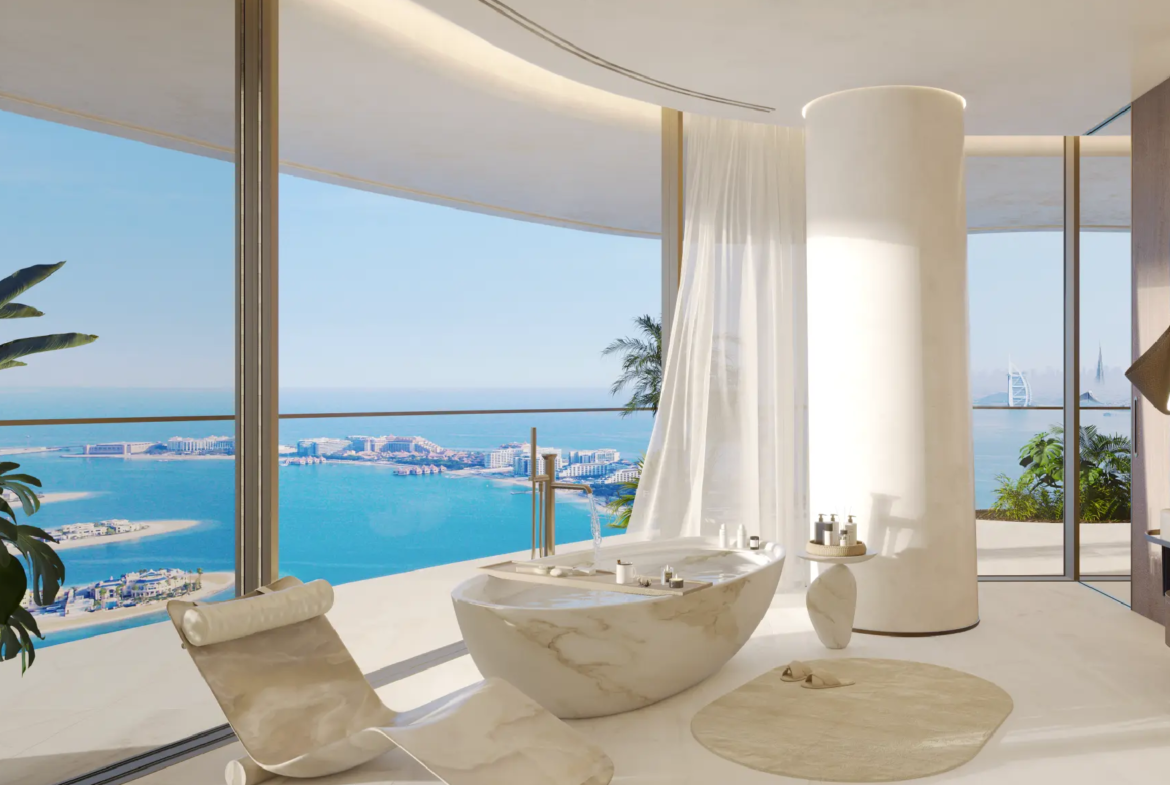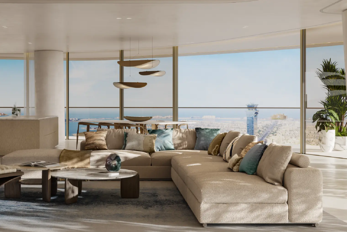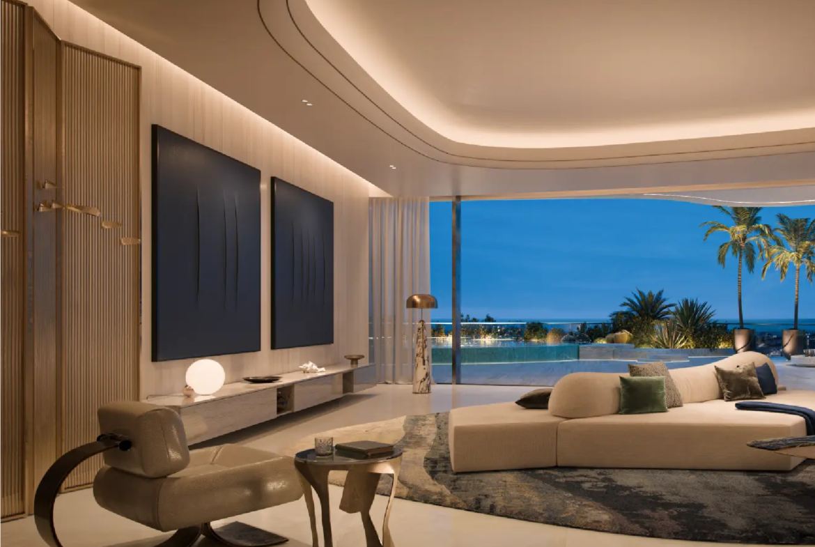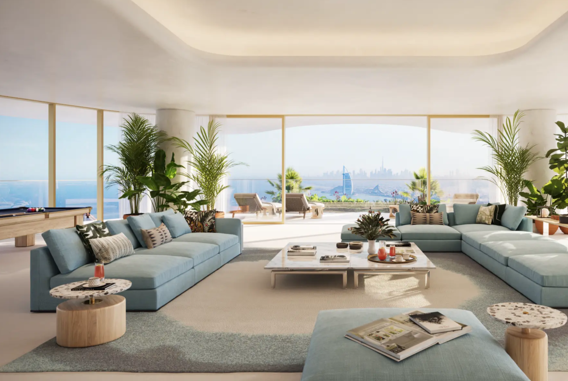 The residences are masterpieces of bespoke design. Featuring 2- to 6-bedroom apartments, 5-bedroom penthouses, and 7-bedroom duplexes, each home is meticulously crafted with premium finishes and attention to detail. Private terraces and pools provide tranquil retreats, while sweeping panoramic views of Burj Khalifa, Burj Al Arab, Palm Jumeirah, and the Arabian Sea frame every moment. Penthouses elevate the experience further with rooftop pools and uninterrupted 360° vistas.