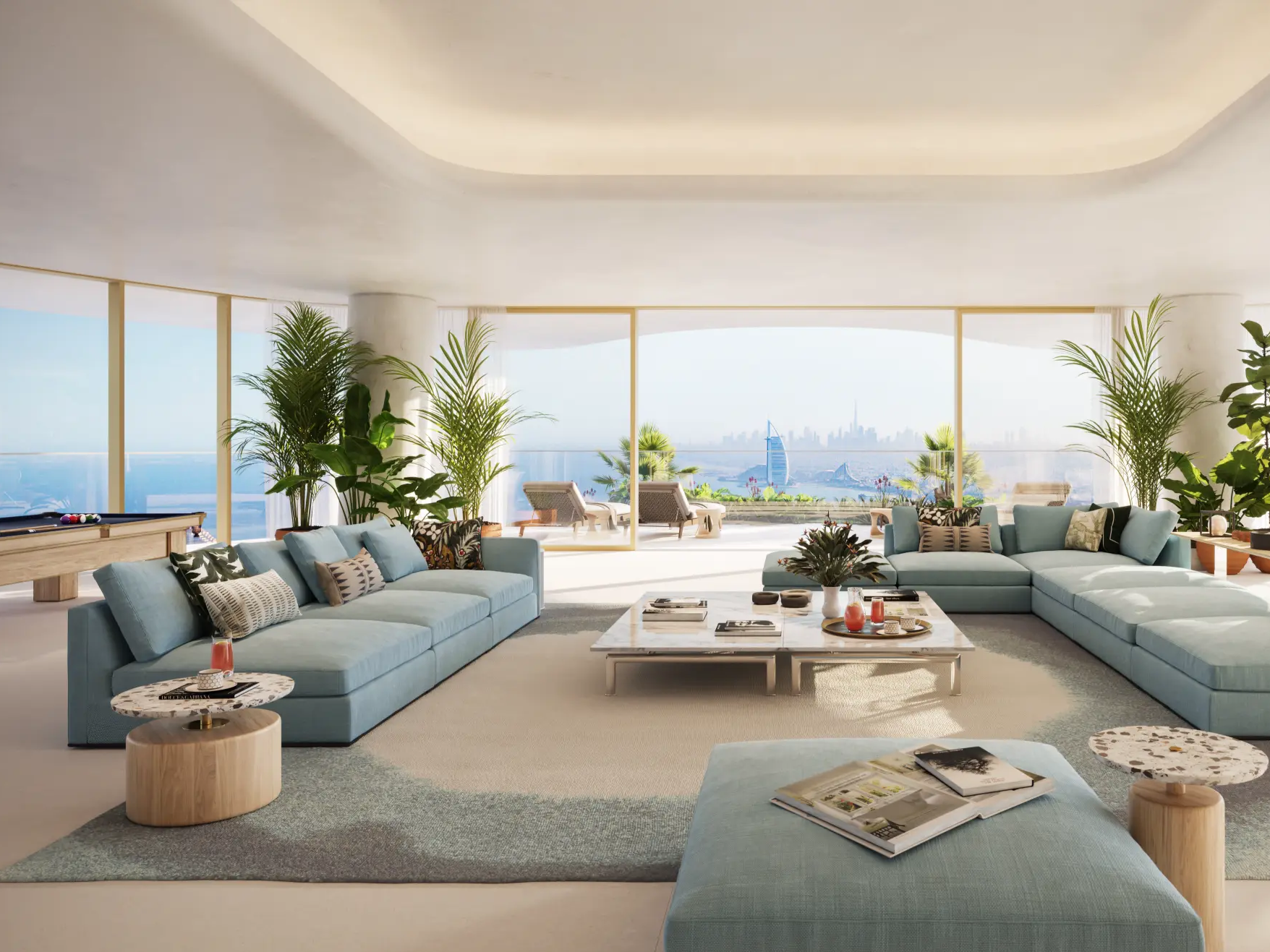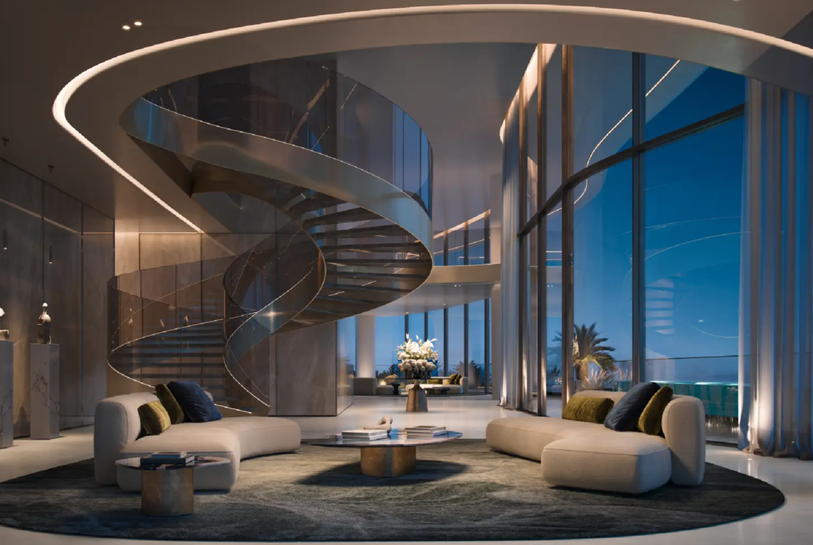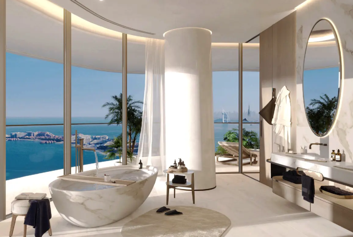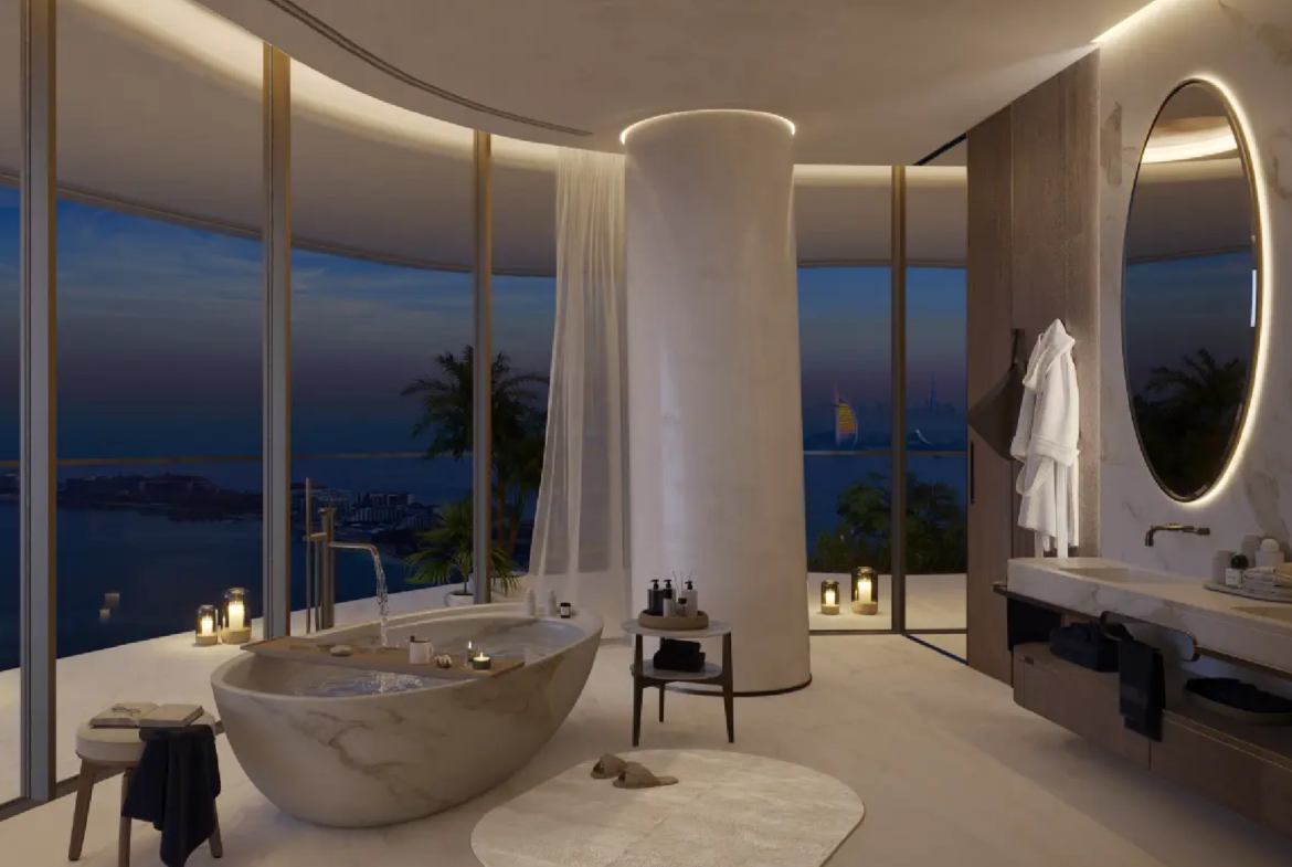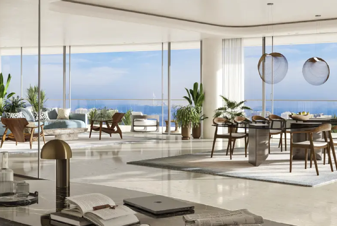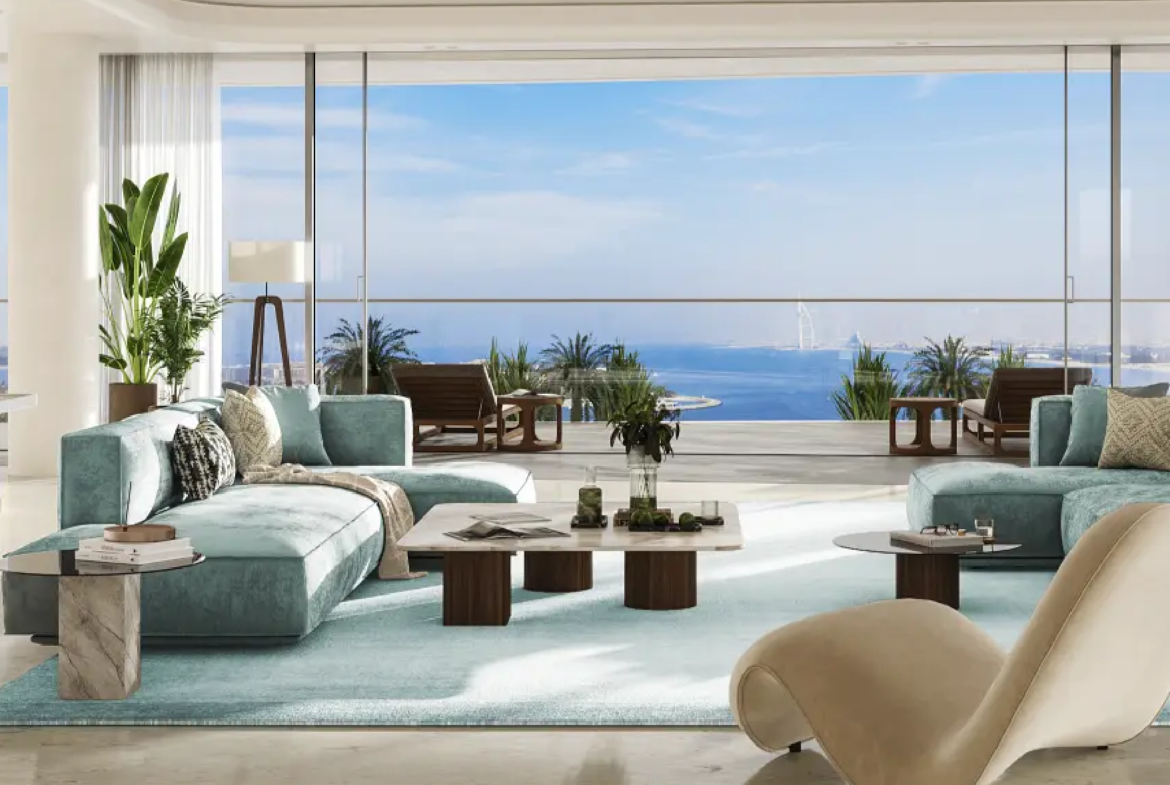 The residences are masterpieces of bespoke design. Featuring 2- to 6-bedroom apartments, 5-bedroom penthouses, and 7-bedroom duplexes, each home is meticulously crafted with premium finishes and attention to detail. Private terraces and pools provide tranquil retreats, while sweeping panoramic views of Burj Khalifa, Burj Al Arab, Palm Jumeirah, and the Arabian Sea frame every moment. Penthouses elevate the experience further with rooftop pools and uninterrupted 360° vistas.