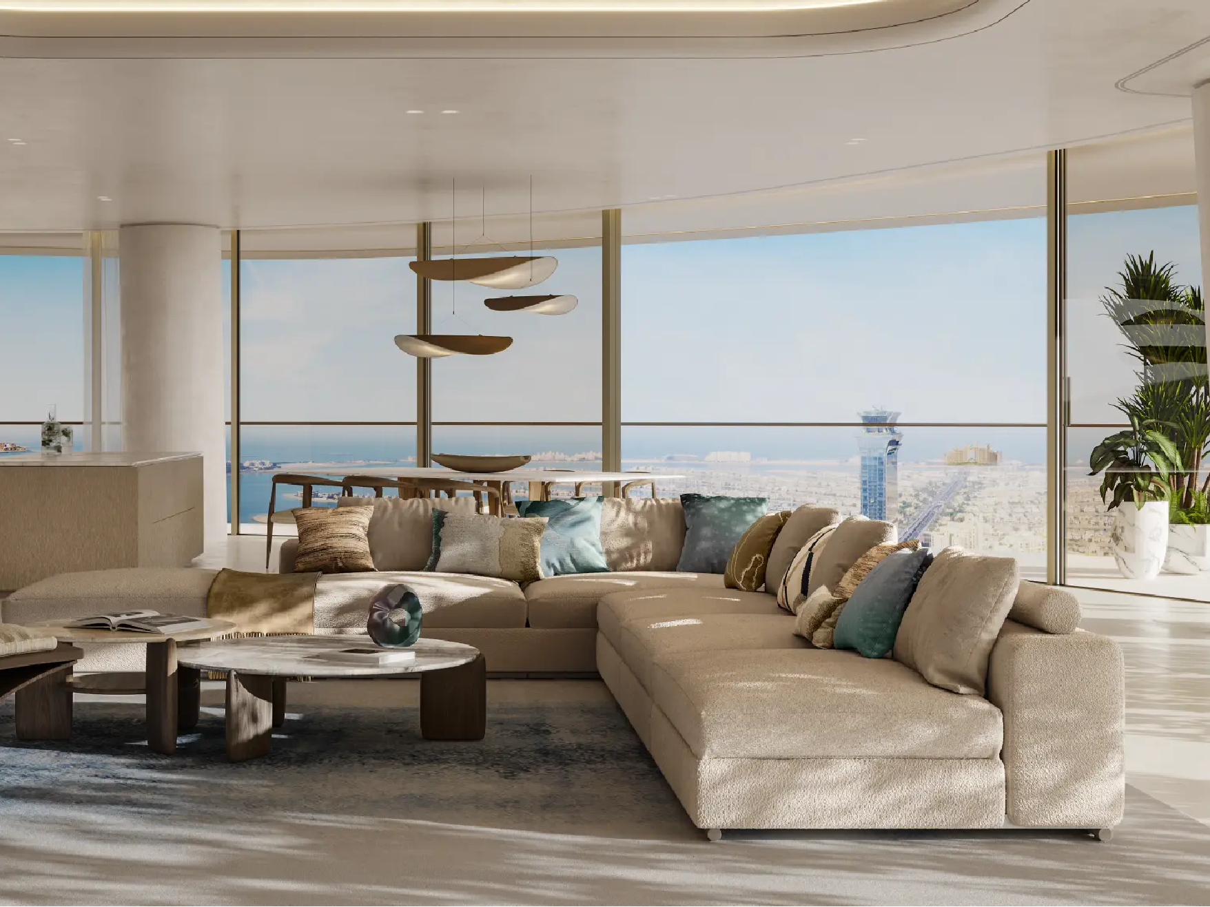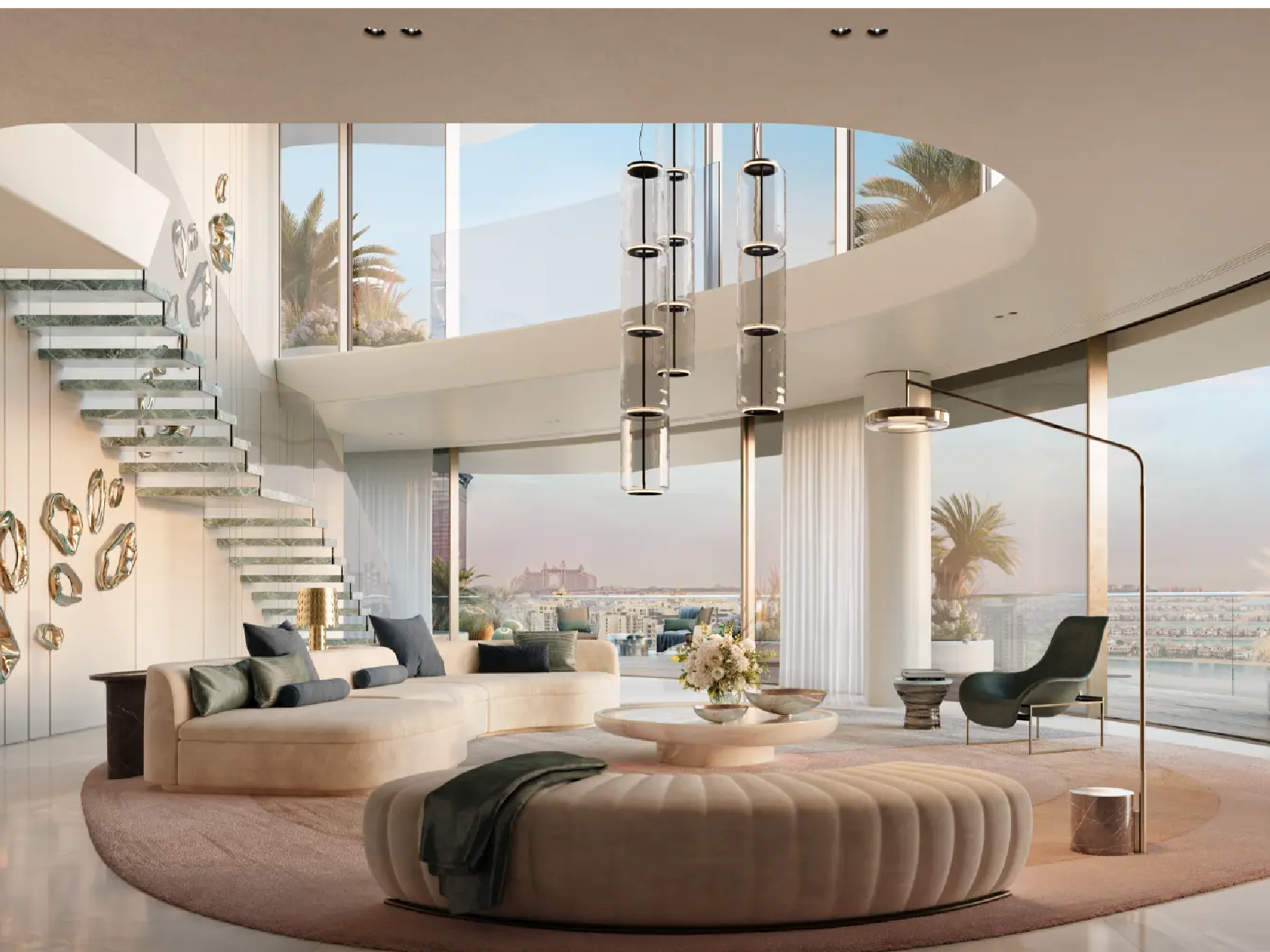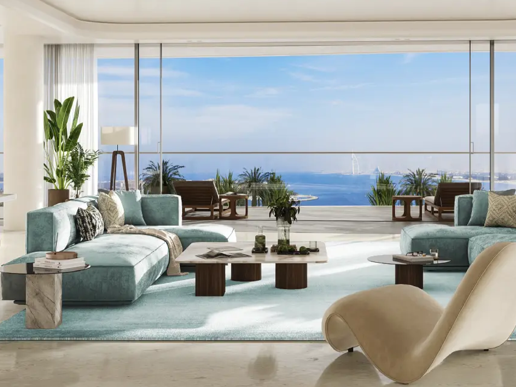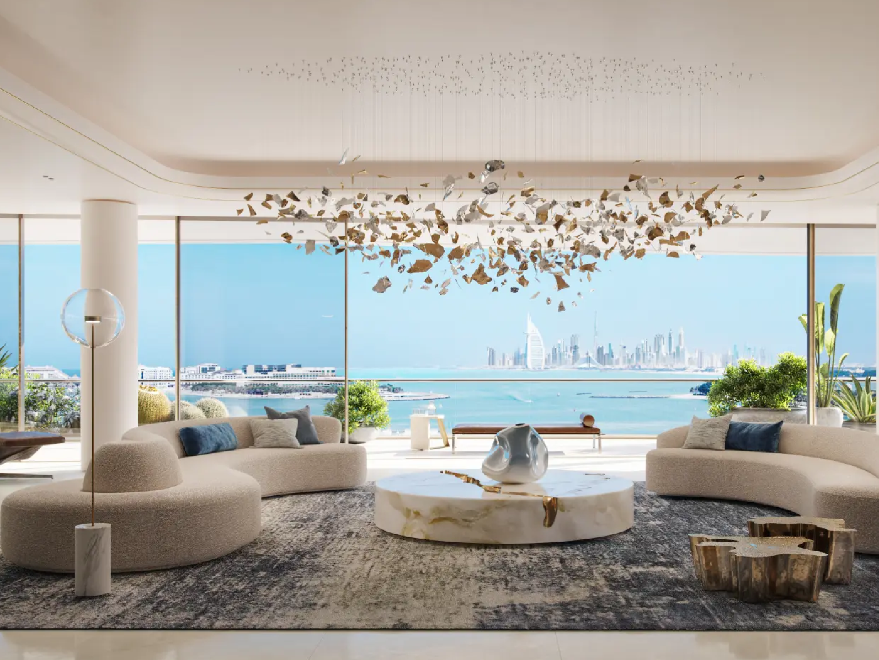 The residences are masterpieces of bespoke design. Featuring 2- to 6-bedroom apartments, 5-bedroom penthouses, and 7-bedroom duplexes, each home is meticulously crafted with premium finishes and attention to detail. Private terraces and pools provide tranquil retreats, while sweeping panoramic views of Burj Khalifa, Burj Al Arab, Palm Jumeirah, and the Arabian Sea frame every moment. Penthouses elevate the experience further with rooftop pools and uninterrupted 360° vistas.