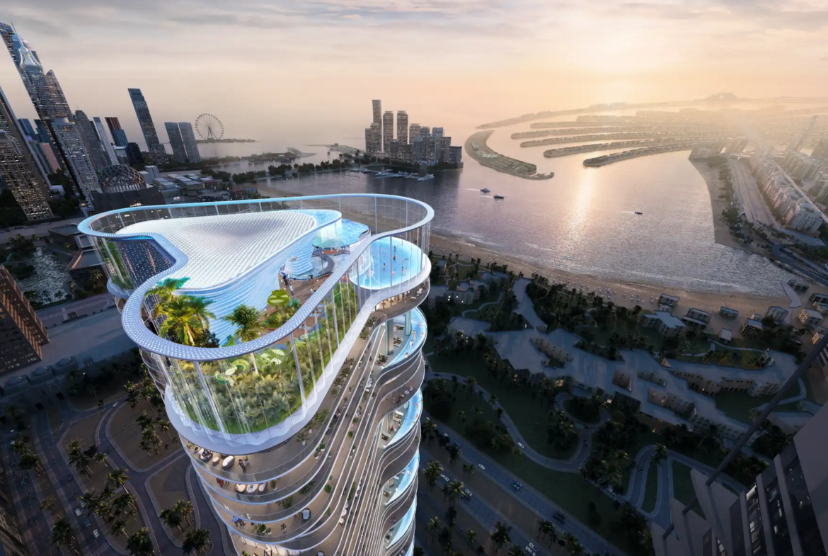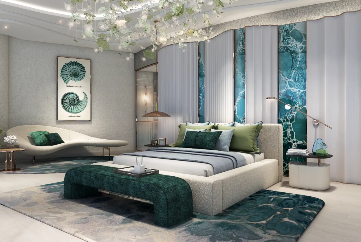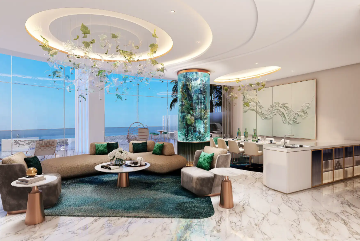 The collection features luxurious 1, 2, and 3-bedroom apartments and townhouses, alongside exclusive 3, 4, and 5-bedroom super-luxury residences. Each home is meticulously designed with tranquil hues, island-inspired textures, and soothing materials, bringing an aura of serenity and sophistication to every corner. Expansive windows frame stunning views of the Arabian Gulf and Palm Jumeirah, blurring the lines between indoor comfort and outdoor splendor.
