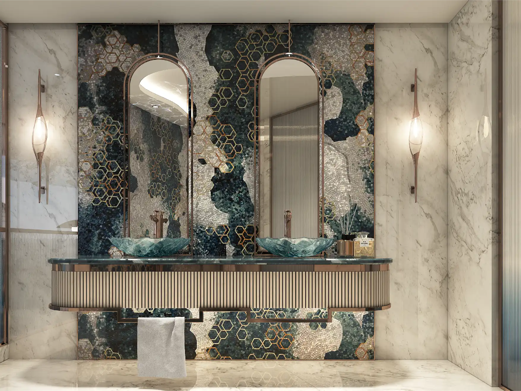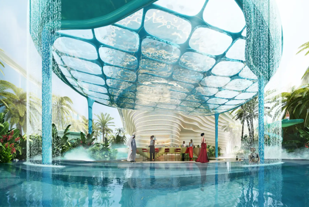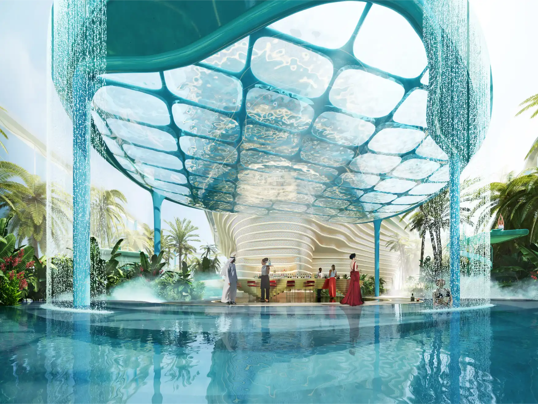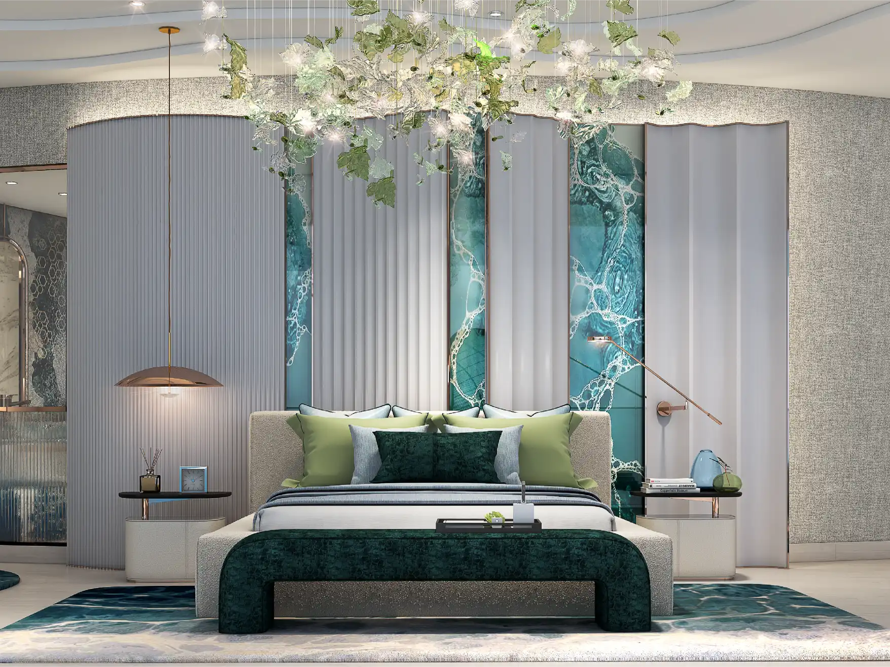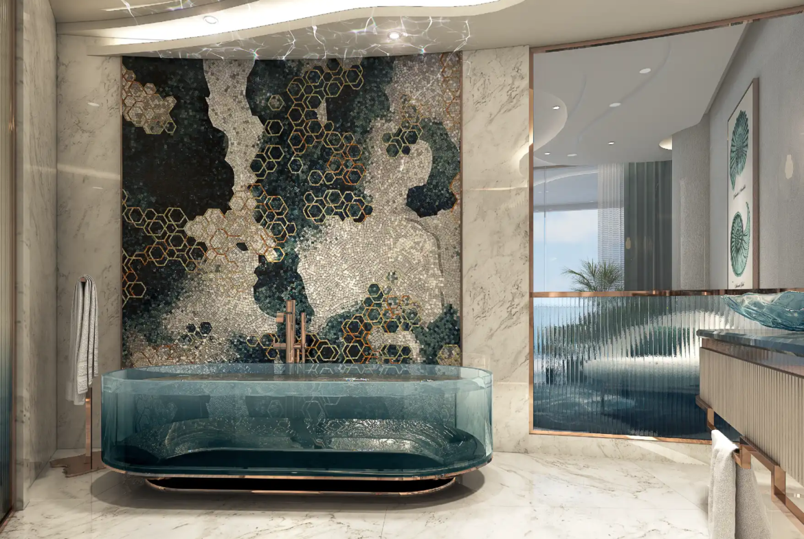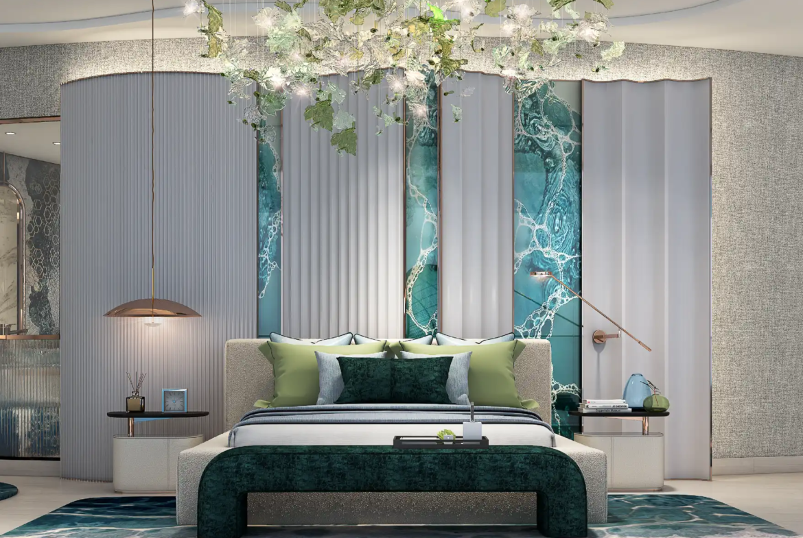 Inspired by the tranquil beauty of tropical islands and the healing essence of water, DAMAC Casa stands as a striking architectural statement. Its fluid, avant-garde design is defined by smooth curves, glass façades, and reflective surfaces that shimmer like sunlight dancing on the sea. From the captivating aquarium hall entrance to the aquatic-inspired interiors, every space is infused with a sense of movement and elegance, creating a dreamlike atmosphere that floats above the city.