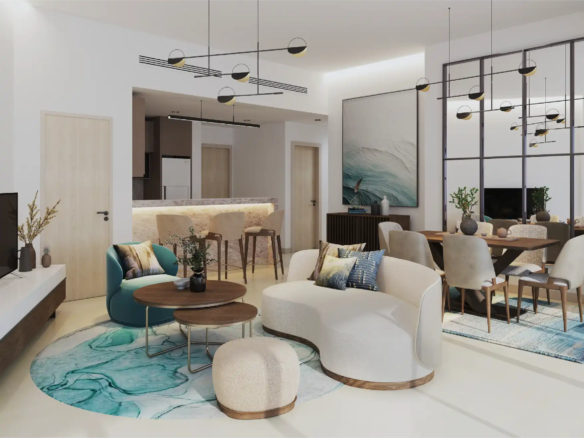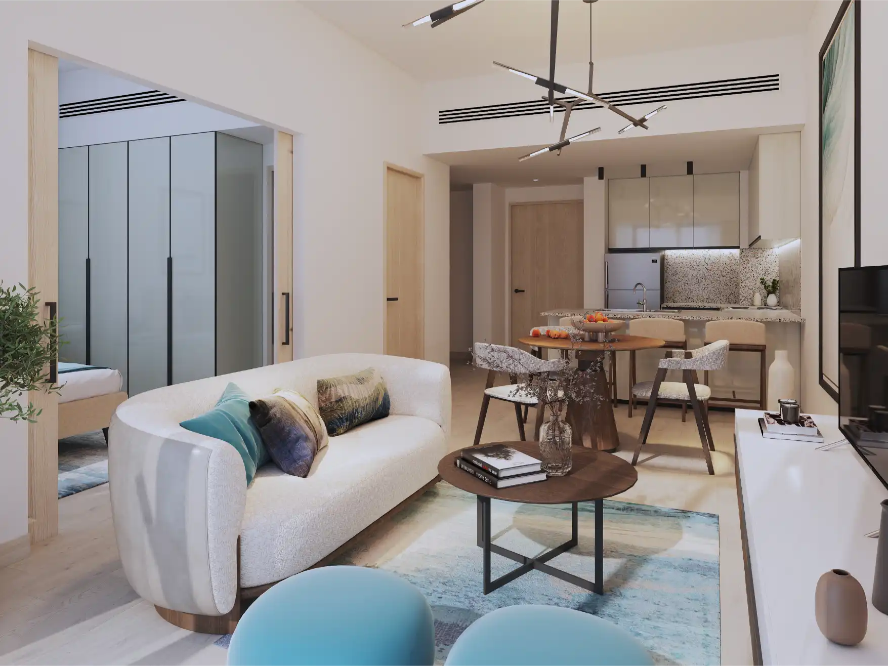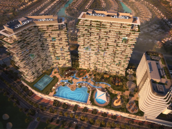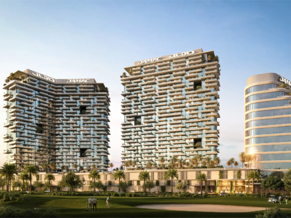 Characterized by understated elegance and contemporary design, DAMAC District brings together sleek architecture and tranquil natural surroundings. The development offers residents panoramic views of the Trump International Golf Club and DAMAC Lagoons, creating an atmosphere of refined serenity. Warm earthy tones, organic textures, and expansive windows foster a natural connection between indoor comfort and the beauty of the outdoors.