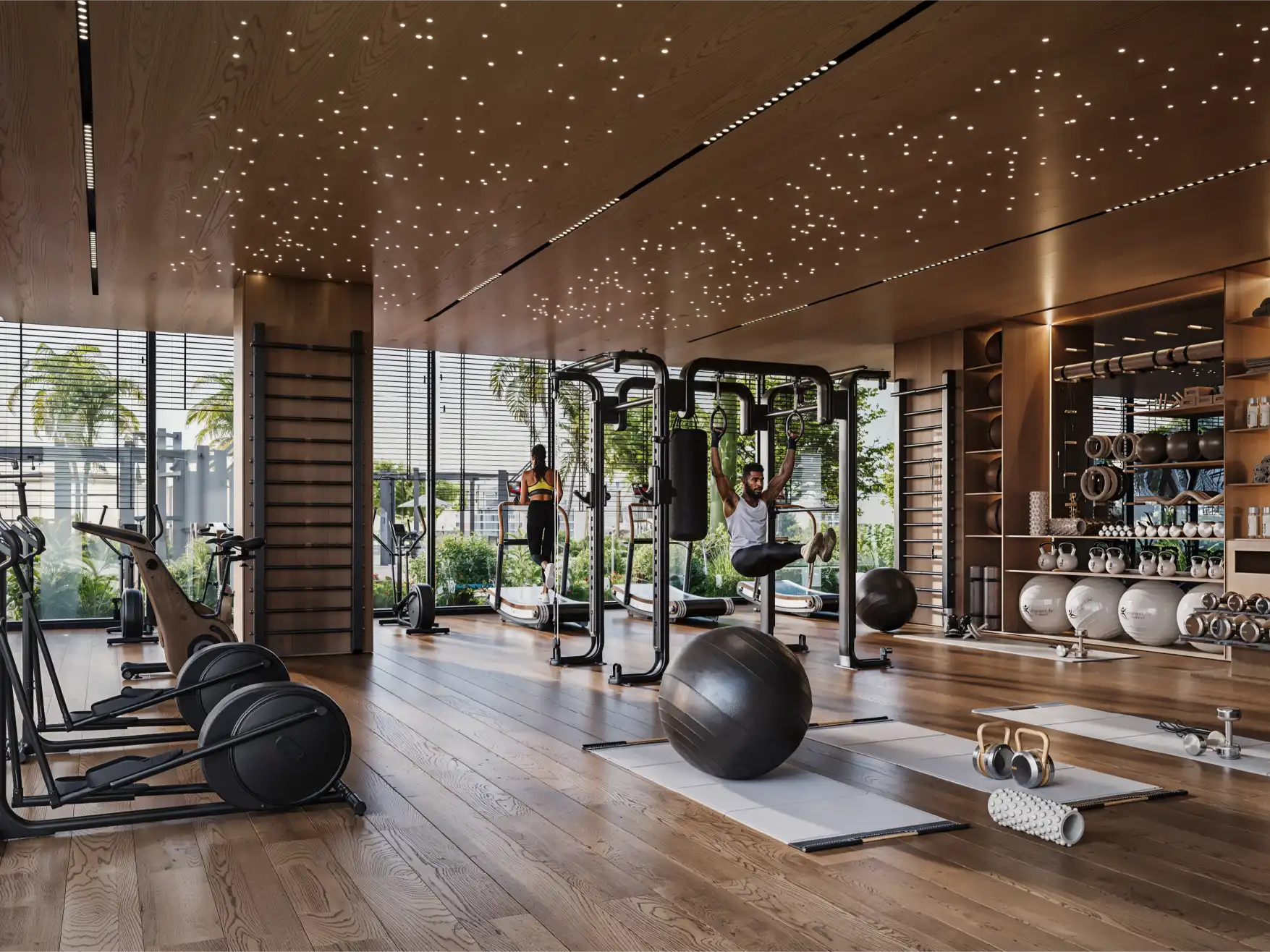 The community sets new standards in health and balance through an array of innovative wellness and leisure experiences. Signature features include the Whispering Waters organic pool, floating yoga gardens, Cloud Zen Lounge, sensory-deprivation tanks, red-light therapy, AI-powered fitness zones, private dining pods, BBQ spaces, padel courts, and an indoor golf simulator.