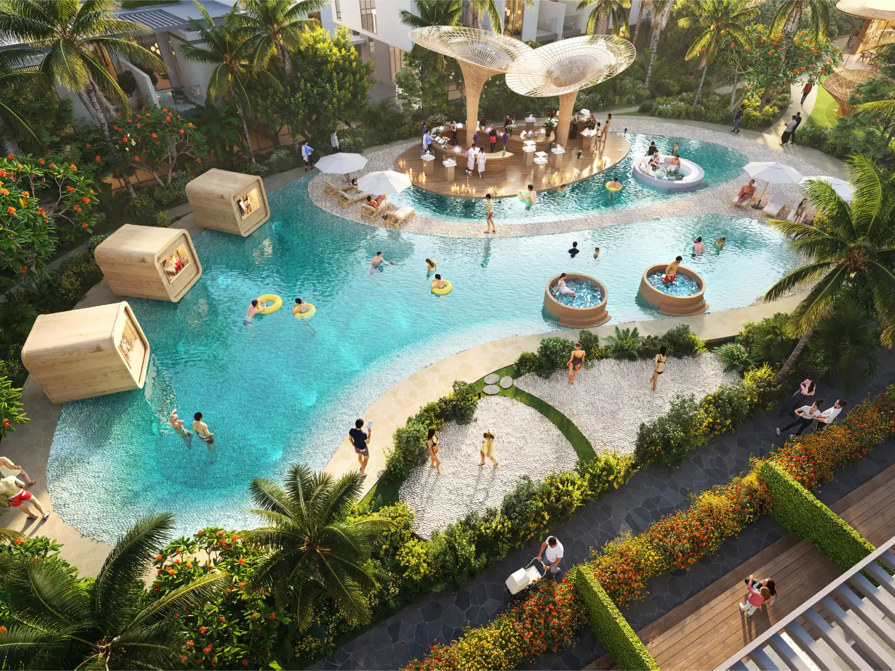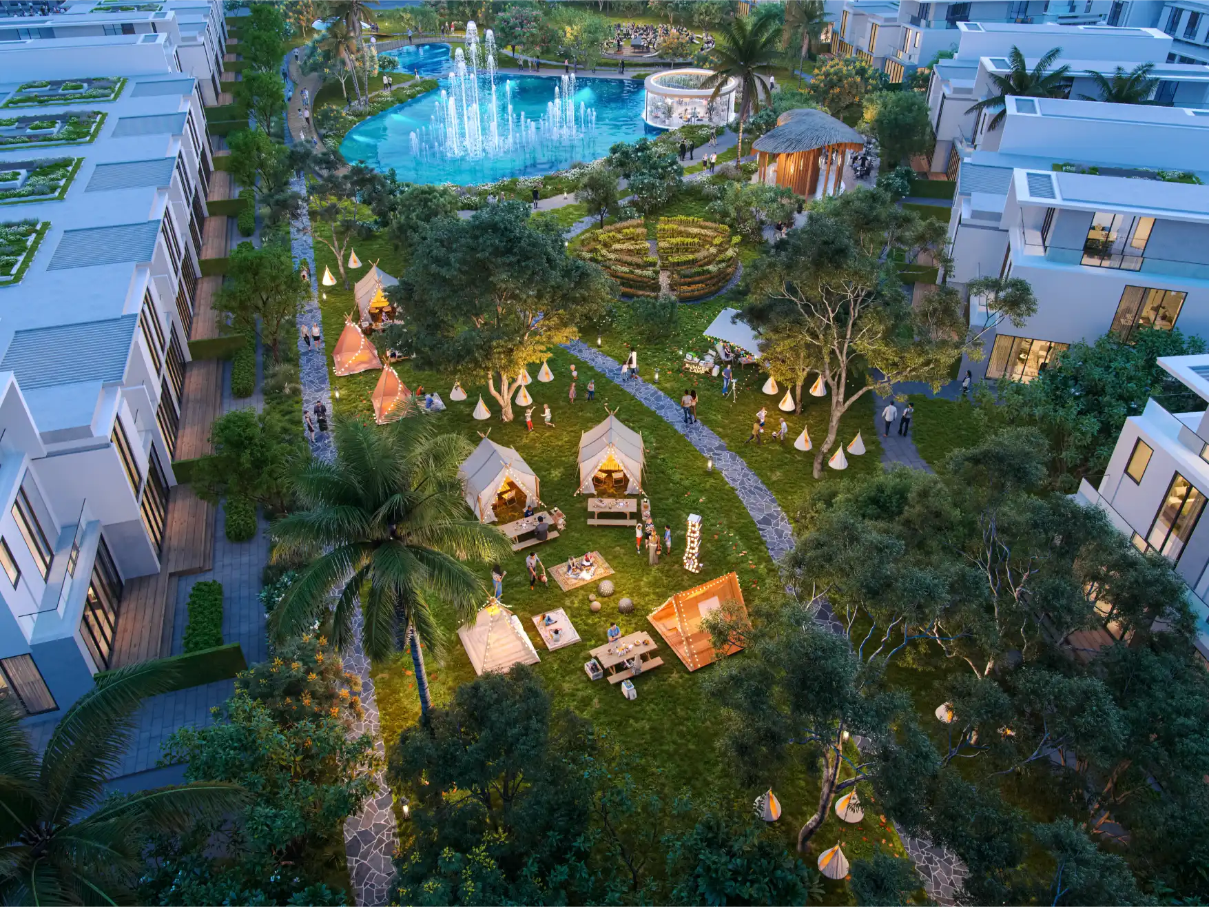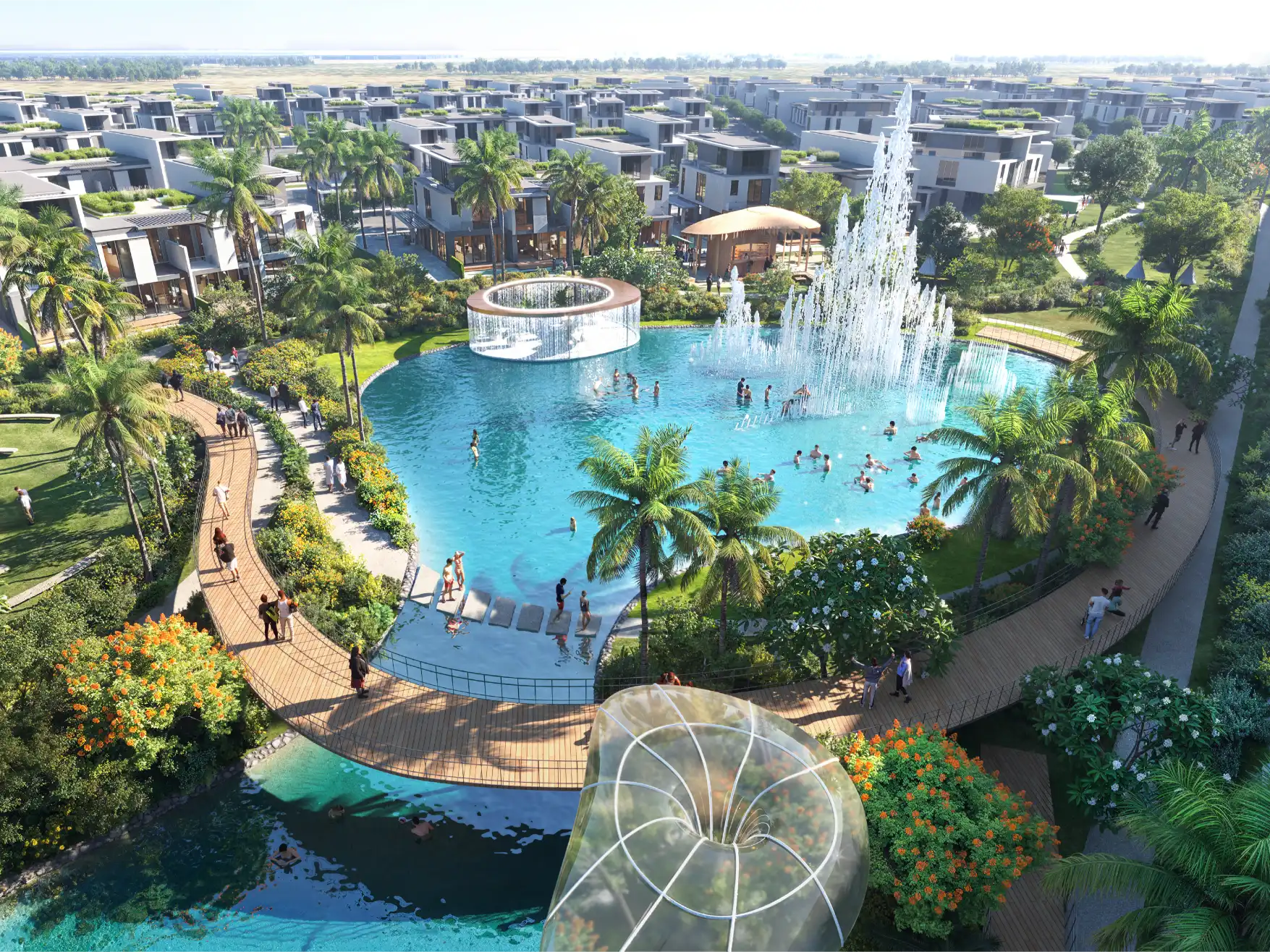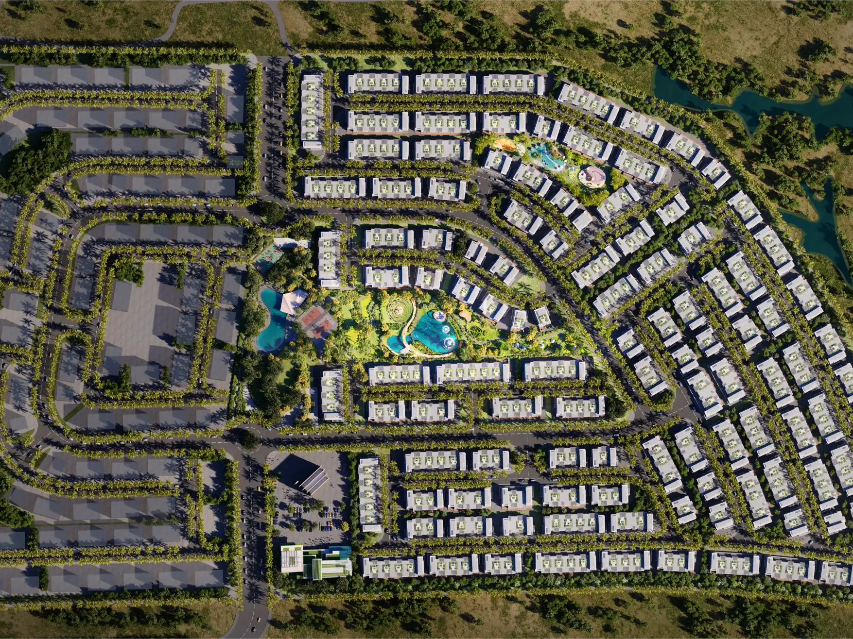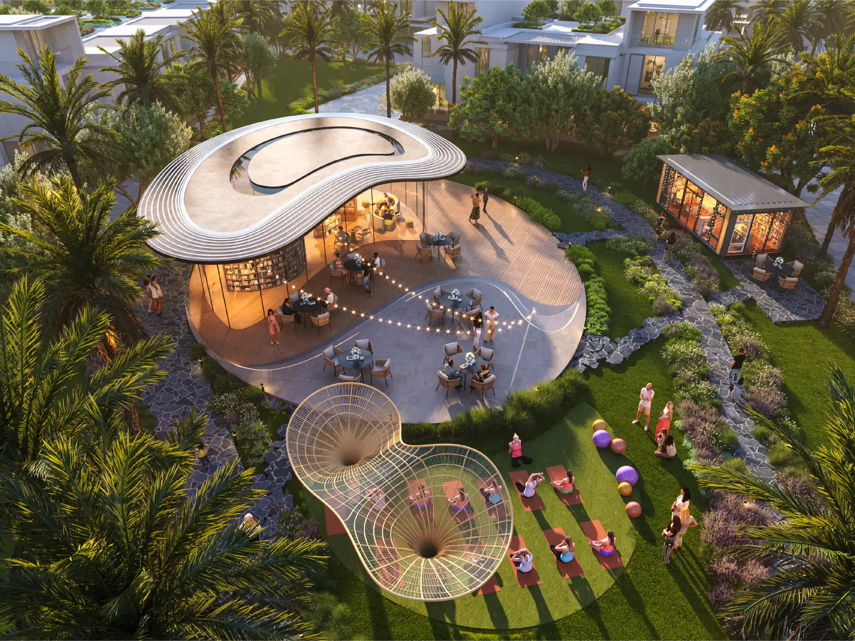 Every element within Sun City is crafted to encourage creativity, connection, and balance. The wild garden amphitheater sets the stage for outdoor performances and community events, while the open-air library and co-working spaces seamlessly blend productivity with nature. Whether you are meditating by the water, reading under the trees, or spending quality time with loved ones, every space is designed to nurture well-being and a sense of belonging.