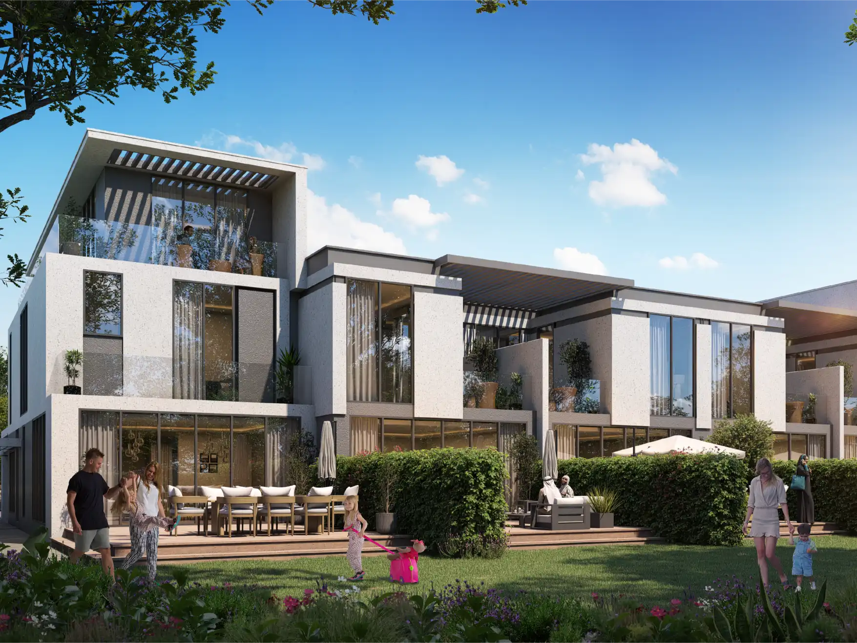 The townhouses are bright and spacious, featuring large windows, natural materials, and warm, earthy tones that create a cozy and welcoming atmosphere. Each home combines modern aesthetics with functional layouts, offering families a perfect environment to live, relax, and thrive.