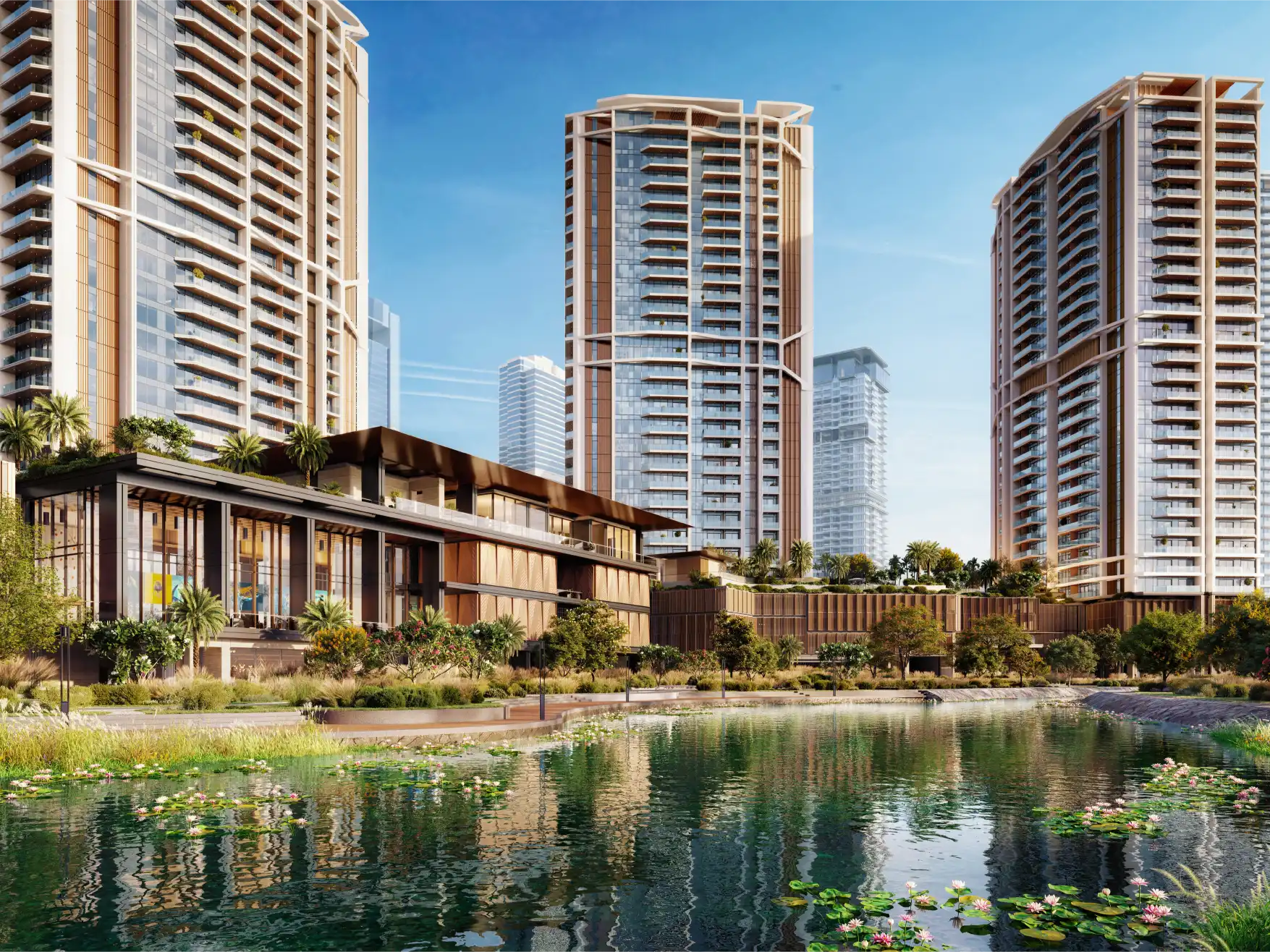 Inside, residents are welcomed into a calm, light-filled lobby crafted with modern finishes and soothing tones—an entrance that immediately communicates sophistication and serenity. Everyday convenience is elevated with on-site retail and F&B outlets, while the expansive landscaped podium deck connects both towers and hosts a curated range of resort-style amenities.