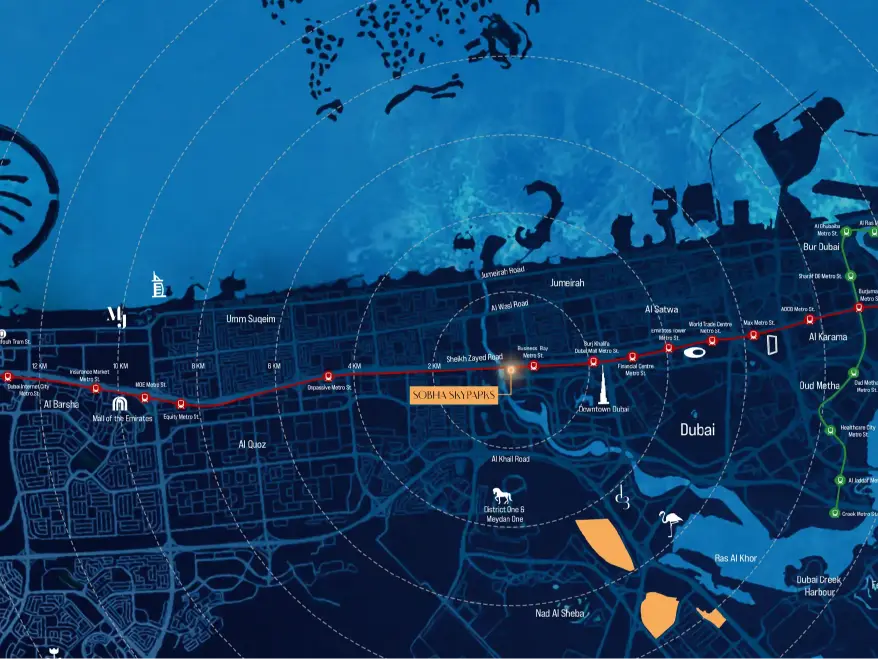 Strategically located in Sobha Hartland 2, the project offers excellent connectivity to key destinations across Dubai, including Downtown Dubai, Business Bay, Dubai Marina, and major retail and entertainment hubs. Residents benefit from easy access to major highways, schools, healthcare centers, and lifestyle attractions, ensuring convenience without compromising the calm, community-focused ambiance of Sobha Hartland 2.