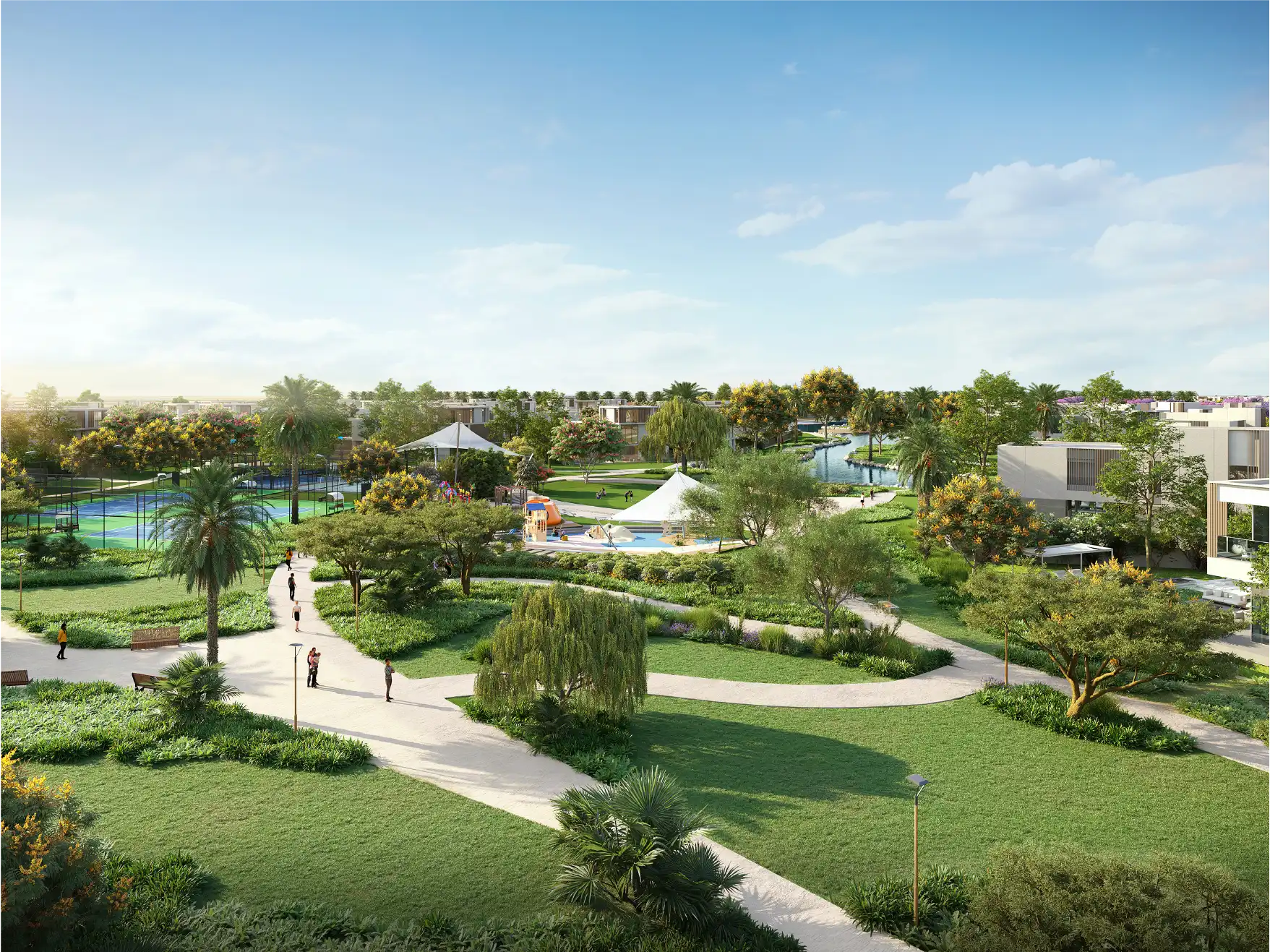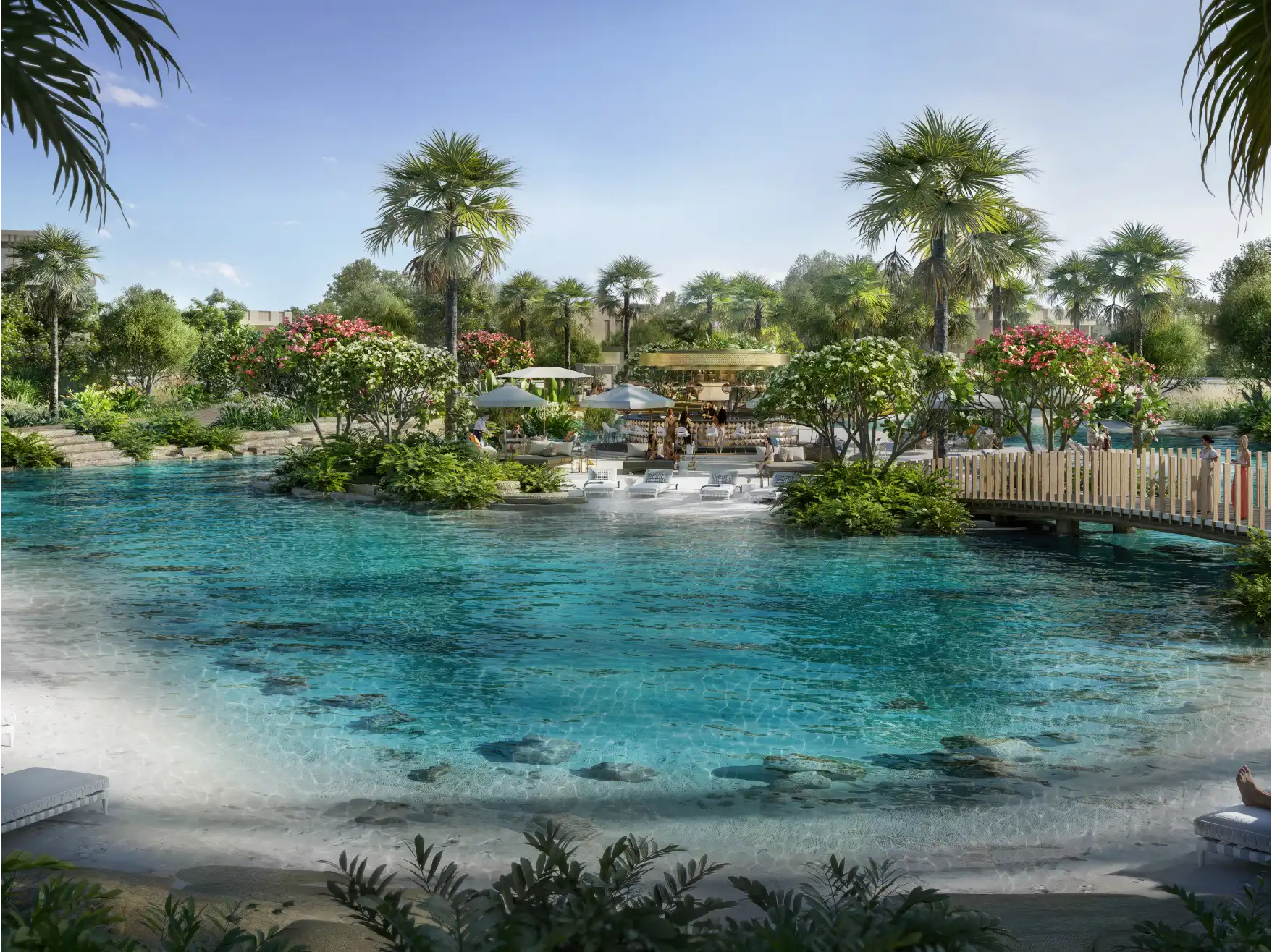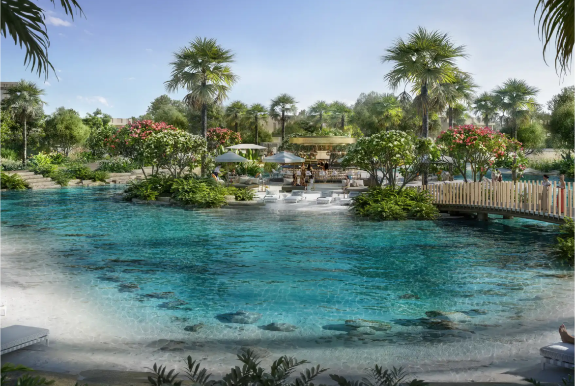 Built around a “Nature’s Blueprint,” The Acres integrates rolling landscapes, sustainable lagoons, and meandering pathways that connect residents to parks, gardens, and communal spaces. The community is LEED v4.1 Cities and Communities certified, reflecting a commitment to sustainable and environmentally conscious living. Residents can enjoy seven uniquely themed gardens, including the Arrival Garden with palm-lined boulevards and a forest theater; the Village Garden with retail promenades, a community clubhouse, schools, and healthcare facilities; the Lagoon Garden with swimmable lagoons and floating decks; the Nature Garden with wellness and meditation spaces; the Lost Garden with adventure trails and treehouses; and the Perfume and Edible Gardens featuring aromatic plants, herbs, and orchards for an immersive sensory experience.
