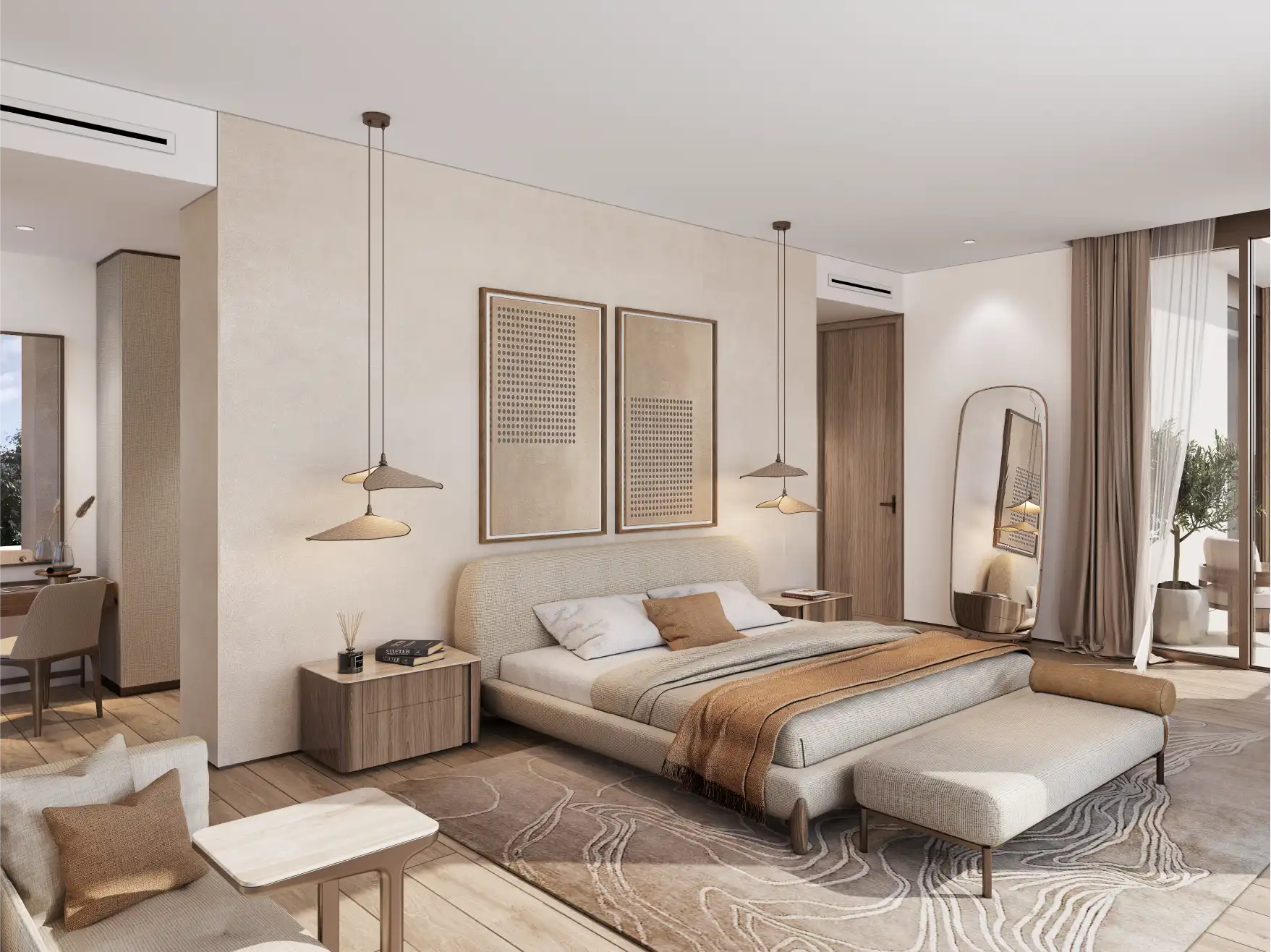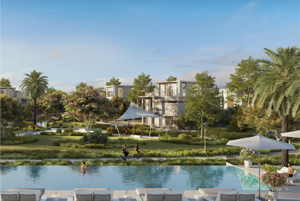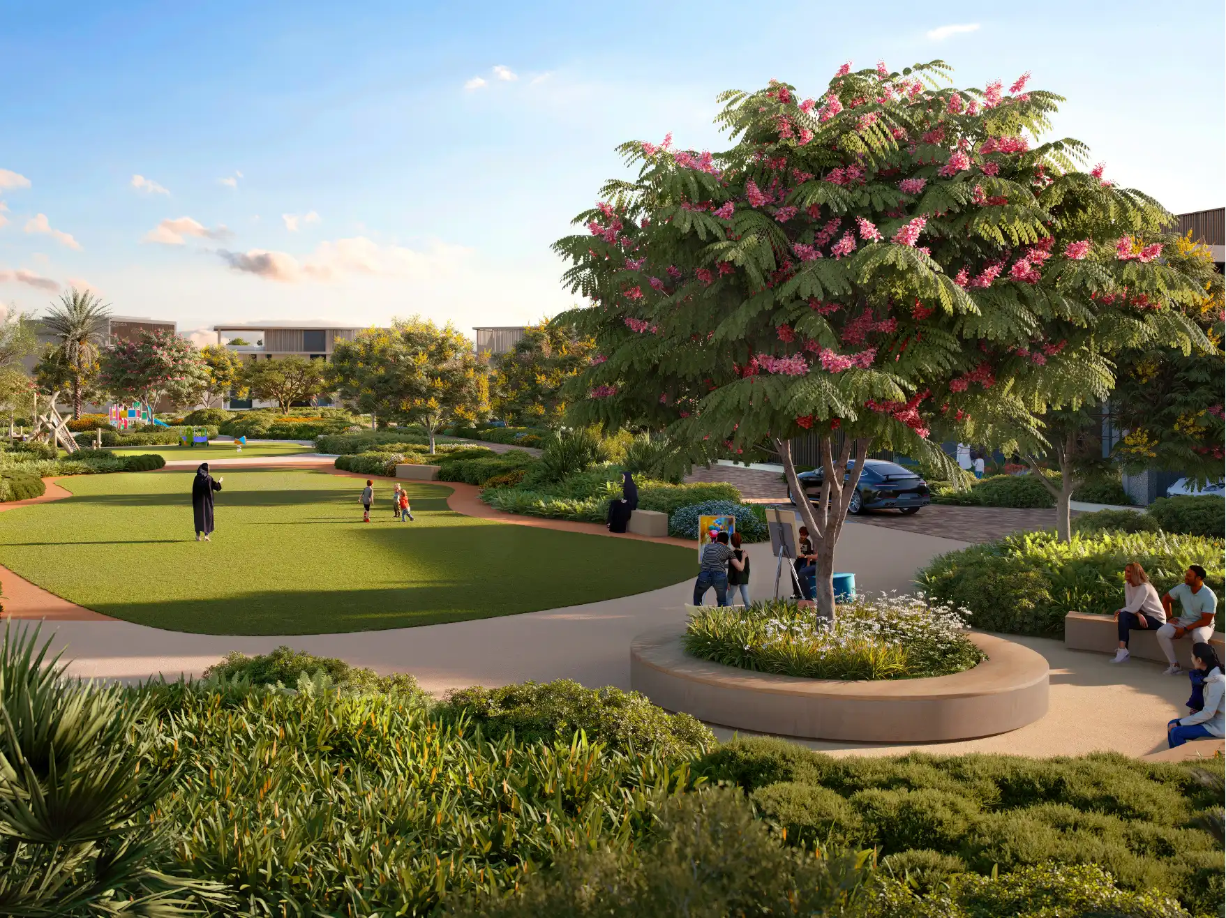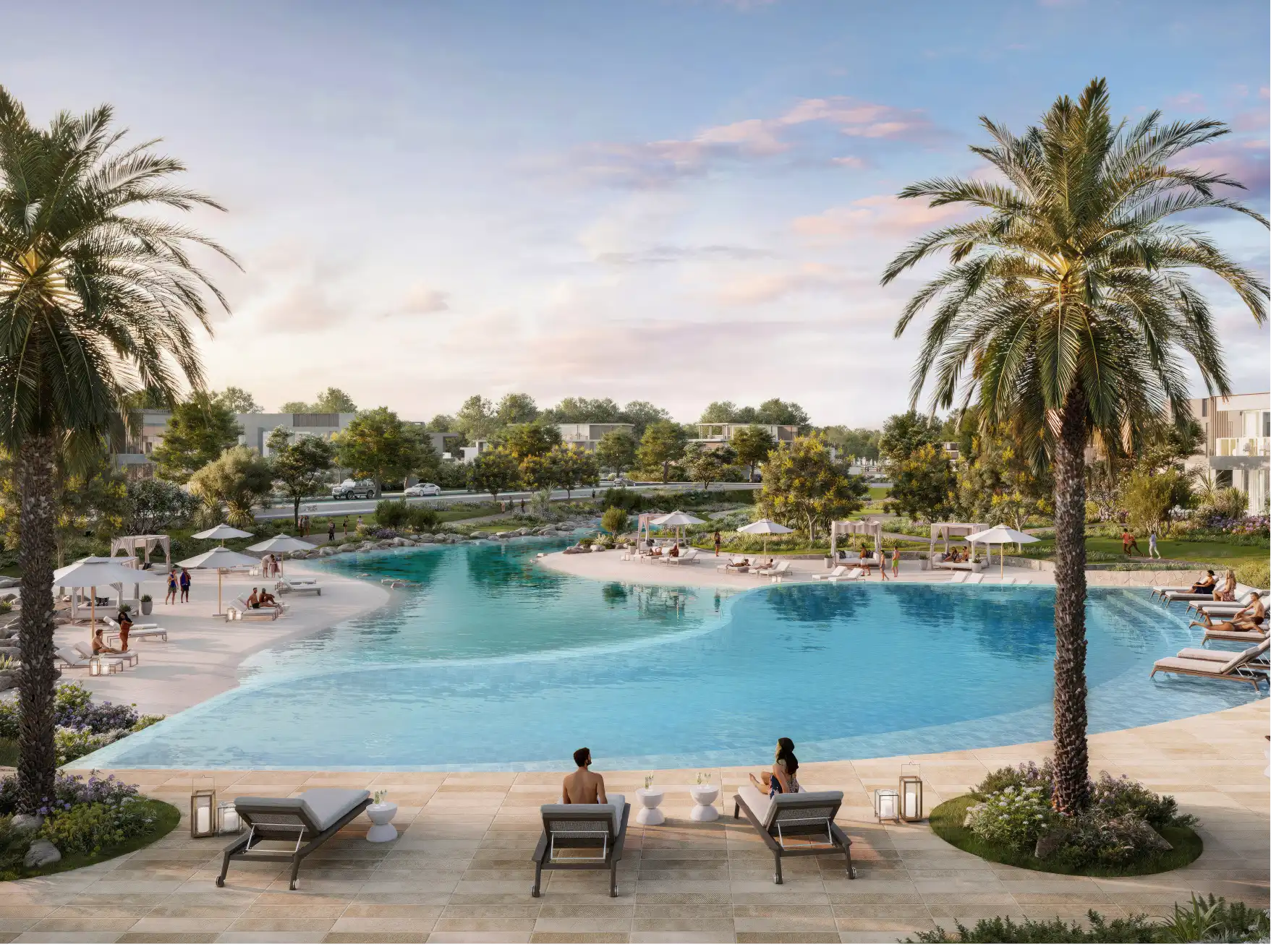 Built around a “Nature’s Blueprint,” The Acres integrates rolling landscapes, sustainable lagoons, and meandering pathways that connect residents to parks, gardens, and communal spaces. The community is LEED v4.1 Cities and Communities certified, reflecting a commitment to sustainable and environmentally conscious living. Residents can enjoy seven uniquely themed gardens, including the Arrival Garden with palm-lined boulevards and a forest theater; the Village Garden with retail promenades, a community clubhouse, schools, and healthcare facilities; the Lagoon Garden with swimmable lagoons and floating decks; the Nature Garden with wellness and meditation spaces; the Lost Garden with adventure trails and treehouses; and the Perfume and Edible Gardens featuring aromatic plants, herbs, and orchards for an immersive sensory experience.