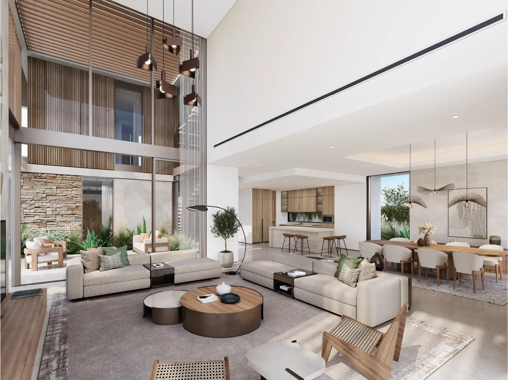 Welcome to The Acres by Meraas, an extraordinary new community of standalone luxury villas located in the heart of Dubailand, Dubai. This exclusive development combines modern architectural elegance with the serene beauty of nature, offering a lifestyle where residents can enjoy peace, privacy, and a true connection to the outdoors. The Acres features 3-, 4-, and 5-bedroom villas with spacious layouts ranging from 3,047 to 6,001 square feet. Each villa is thoughtfully designed with open-plan interiors, double-height living spaces, floor-to-ceiling windows, and signature outdoor rooms that seamlessly blend indoor comfort with the surrounding natural landscapes. Private rear gardens extend the living space into the outdoors, creating a perfect environment for relaxation, recreation, and family living.