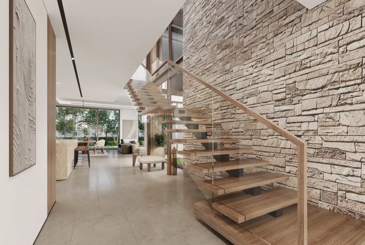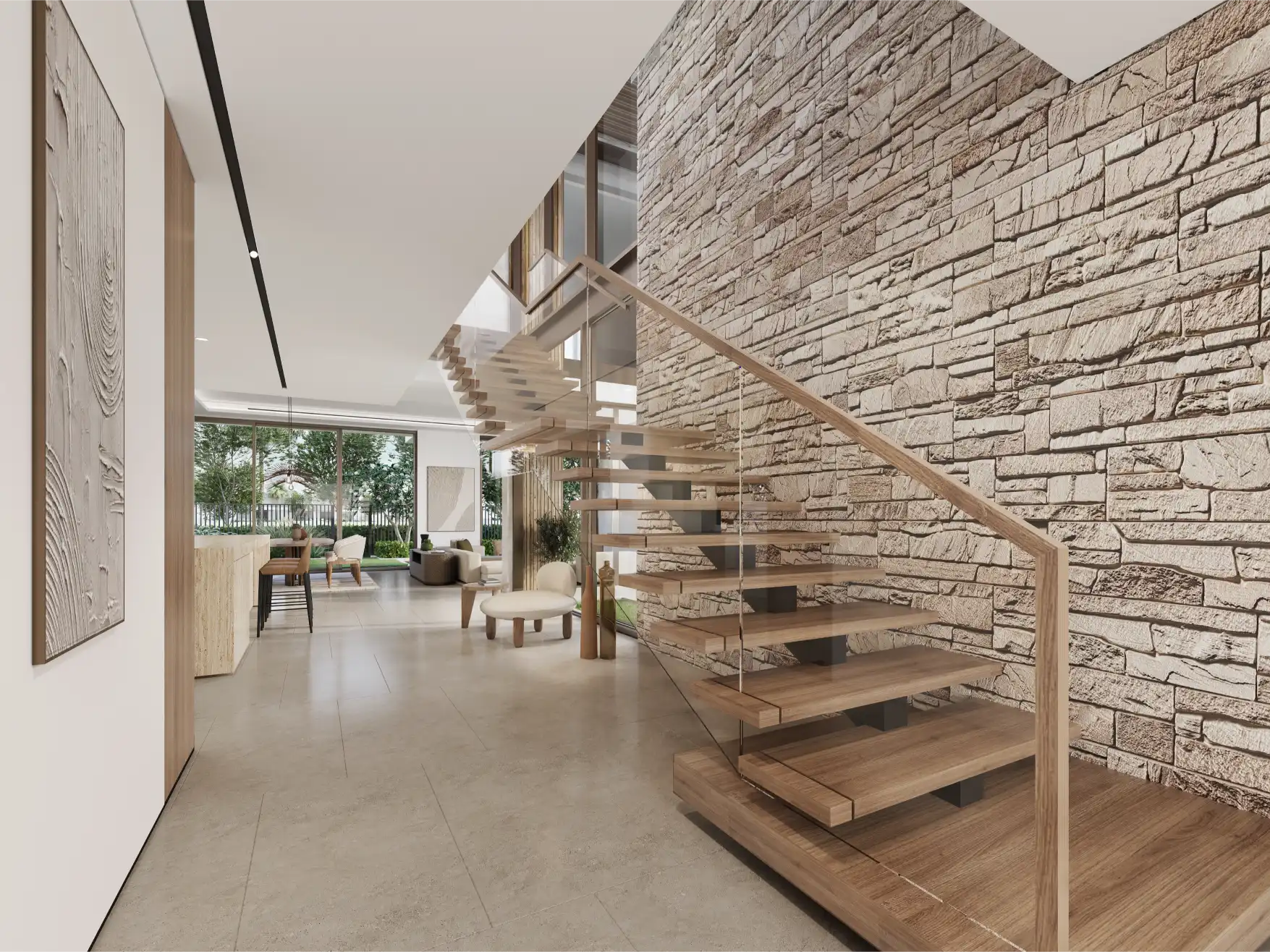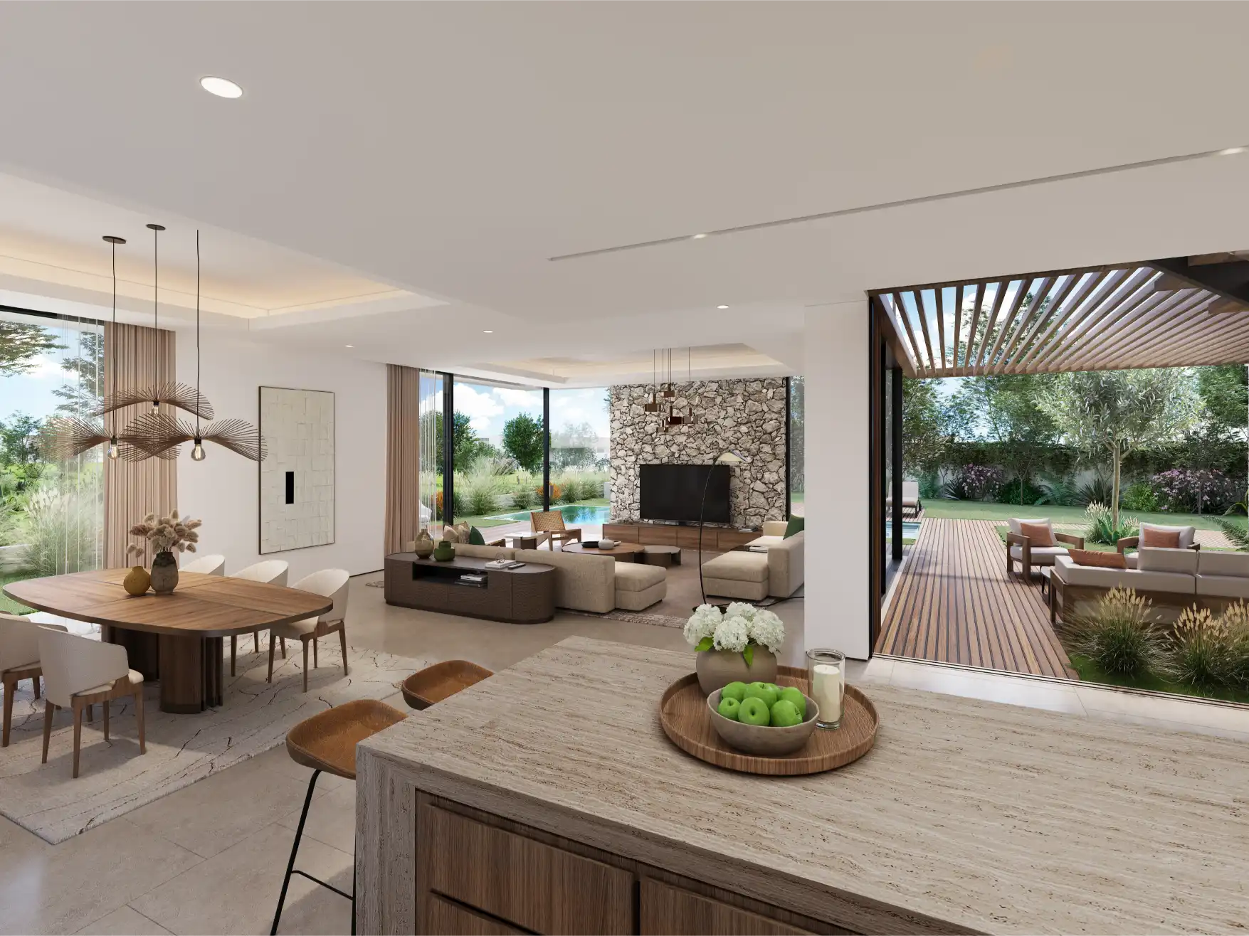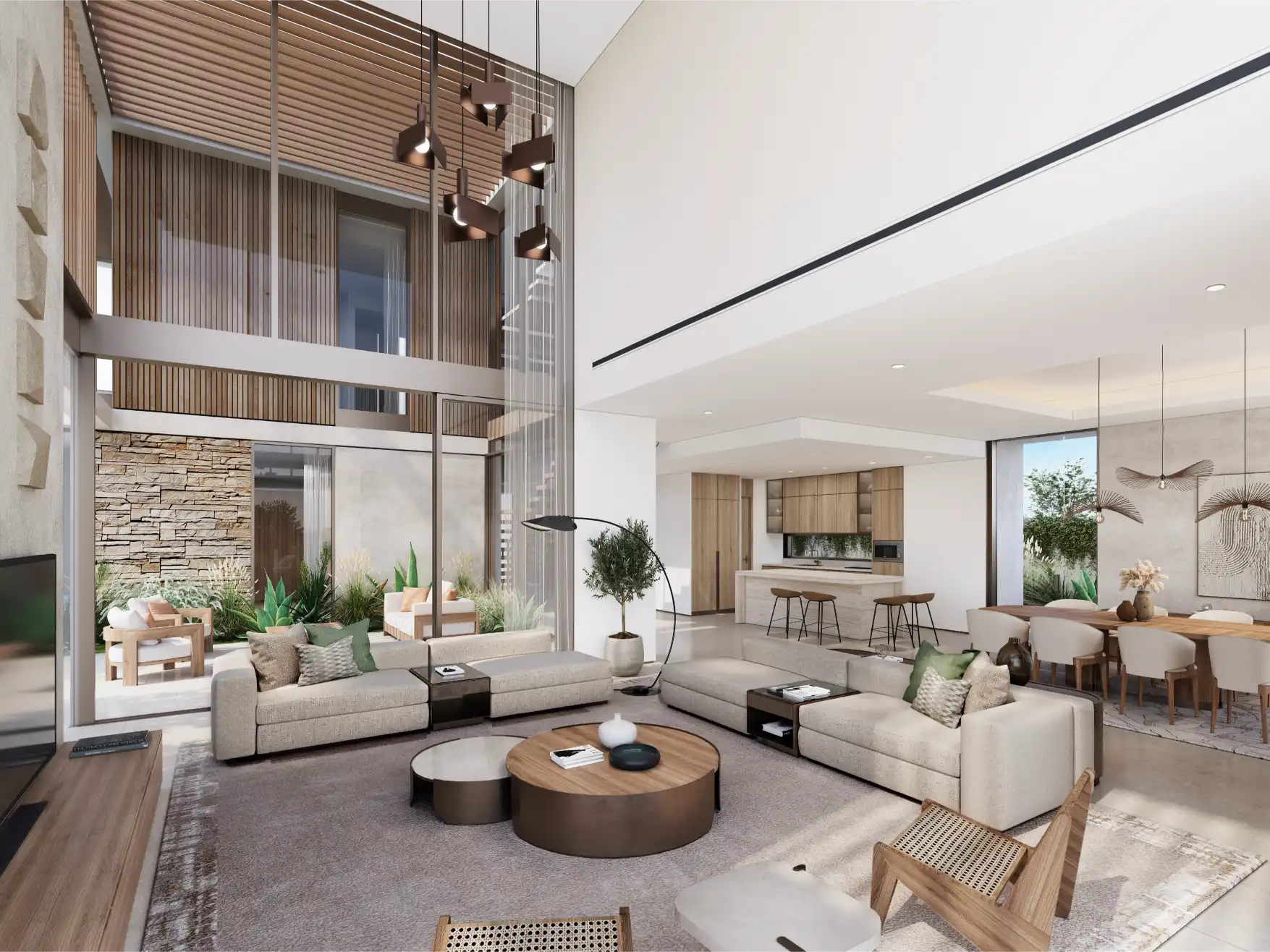 Designed around flourishing landscapes and the innovative Halo Loop Park, the master plan creates a safe and walkable community with abundant greenery and smooth neighborhood connectivity. The Acres also demonstrates a strong commitment to sustainability and proudly holds the LEED v4.1 Cities and Communities certification. In its first release, the community presents refined three- to five-bedroom villas featuring outdoor rooms, open-plan layouts, double-height spaces, and floor-to-ceiling glass windows that draw natural light and greenery into every corner of the home. The design incorporates stone, timber, and glass to achieve a modern look that remains true to the surrounding landscape.